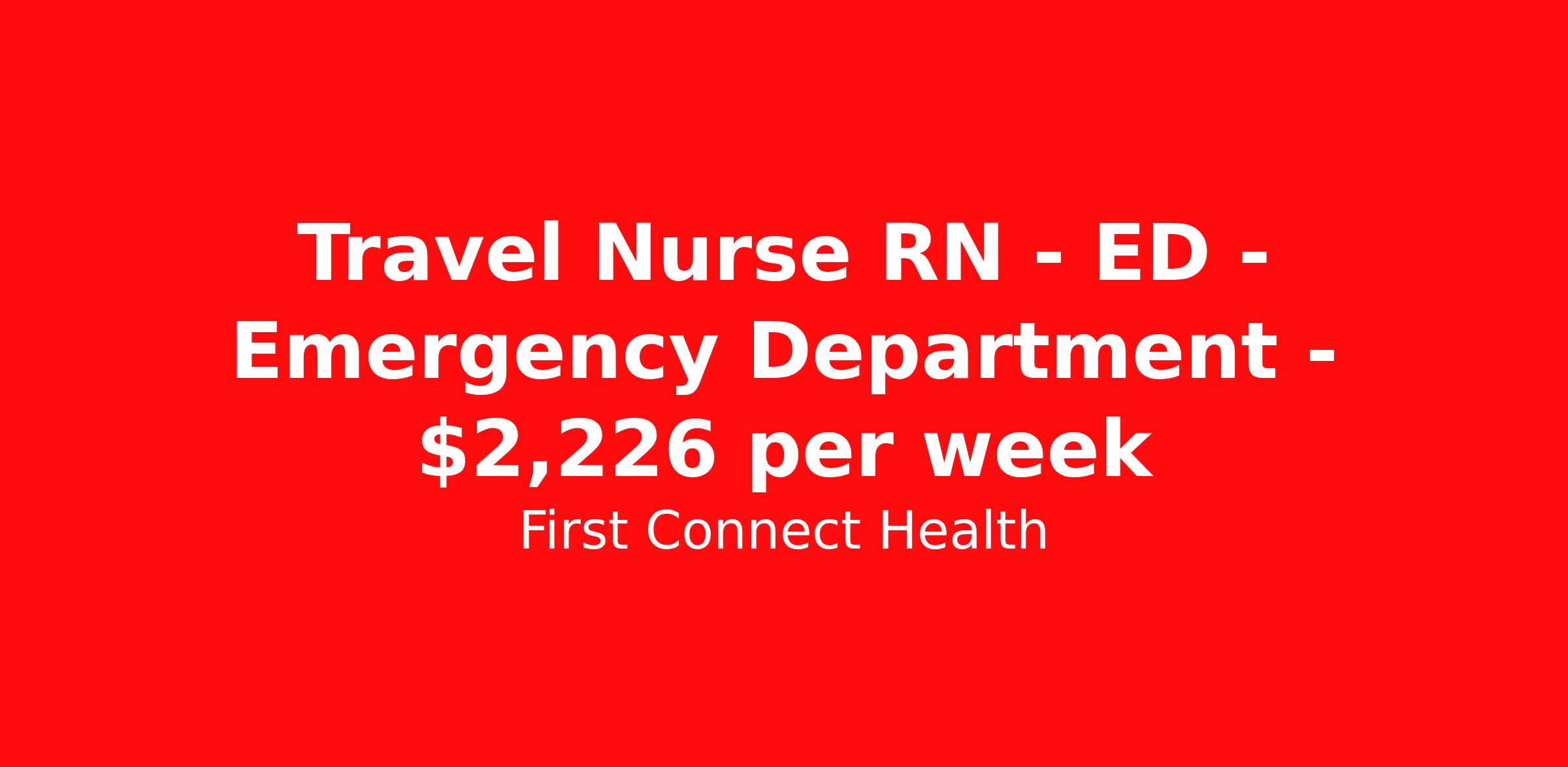 First Connect Health is seeking a travel nurse RN ED - Emergency Department for a travel nursing job in Bakersfield, California. Job Description & Requirements Specialty: ED - Emergency Department Discipline: RN Start Date: 04/13/2026 Duration: 11 weeks 36 hours per week Shift: 12 hours, days Employment Type: Travel Bachelor's Degree in Nursing (BSN): Preferred Acute care facility experience: Preferred Licenses/Certifications: Registered Nurse (RN) licensure in the state of practice: Required Cardiopulmonary Resuscitation (CPR) or Basic Life Support (BLS OR HS-BLS OR RQIBLS) certification: Required Department Specific License/Certifications: Advanced Cardiac Life Support (ACLS) or Healthstream Advanced Cardiac Life Support (HS-ACLS) or RQIACLS: Required Department Specific License/Certifications: Pediatric Advanced Life Support (PALS) or Healthstream Pediatric Advanced Life Support (HS-PALS) or RQIPALS: Required About First Connect Health At First Connect Health , we take pride in being a Joint Commission–certified healthcare staffing agency , headquartered in Newark, New Jersey. This prestigious certification is more than just a seal — it's a reflection of our commitment to excellence, safety, and quality in everything we do. By meeting the rigorous standards set by The Joint Commission, one of the most respected accrediting bodies in healthcare, we've demonstrated that our processes, compliance, and patient care standards are aligned with the highest levels of quality in the industry. But our dedication goes beyond certifications. Nurses choose First Connect Health because: ✅ Trust and Transparency: We foster honest communication, timely updates, and full transparency throughout your placement journey. ✅ Best Pay & Benefits: We offer industry-leading compensation packages, along with benefits that support your career goals. ✅ Flexibility & Choice: Whether you're seeking short-term assignments, long-term contracts, or local opportunities, we provide the flexibility to suit your preferences. ✅ Personalized Support: Our recruiters take the time to understand your needs, guiding you with care, respect, and responsiveness at every step. When you work with First Connect Health, you're not just another number — you're a valued professional. Join a team that’s focused on your success, your well-being, and your future in healthcare. Benefits Medical benefits Sick pay 401k retirement plan Weekly pay Referral bonus