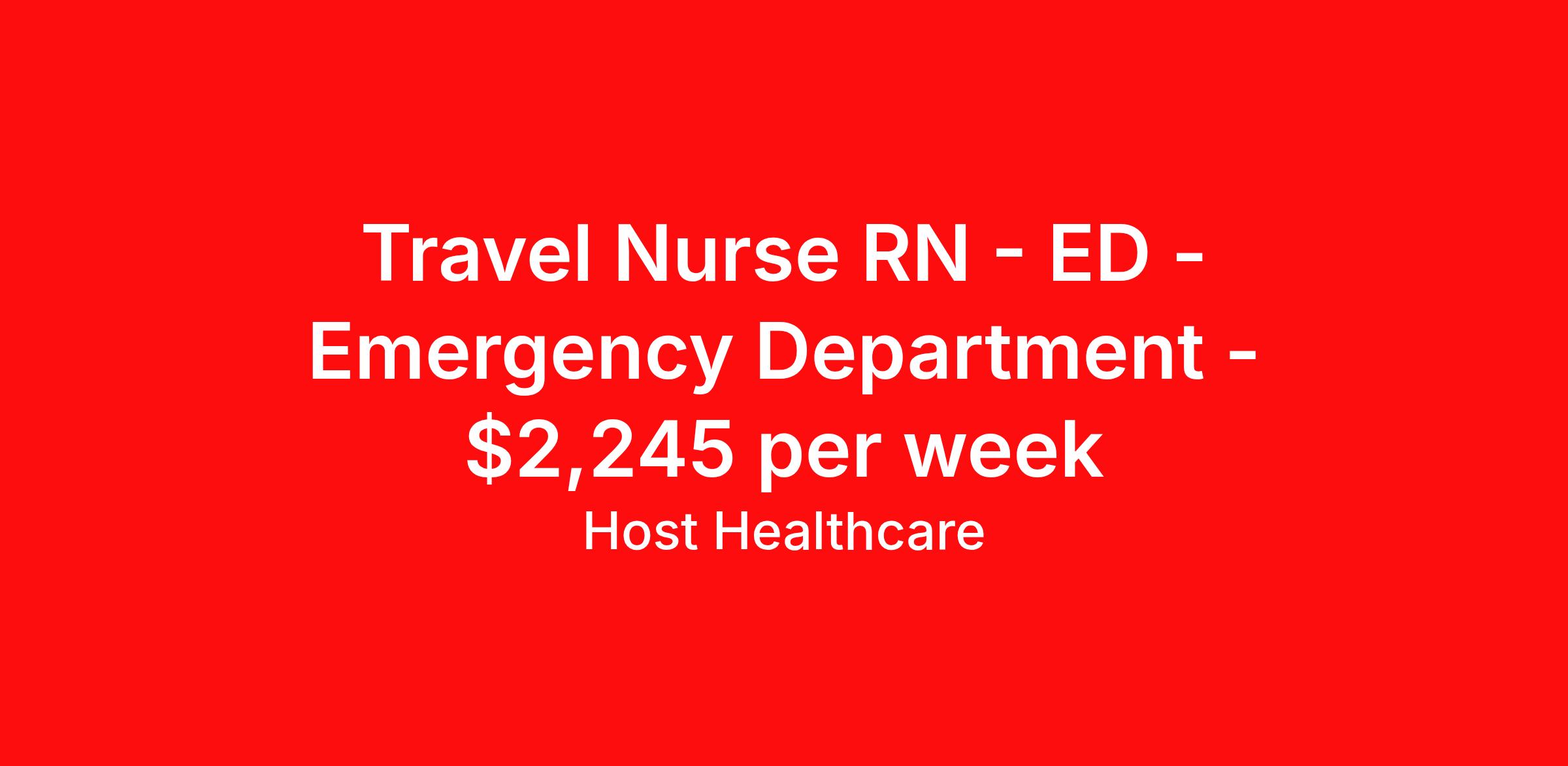 Travel Nurse RN - ED - Emergency Department - $2,245 per week