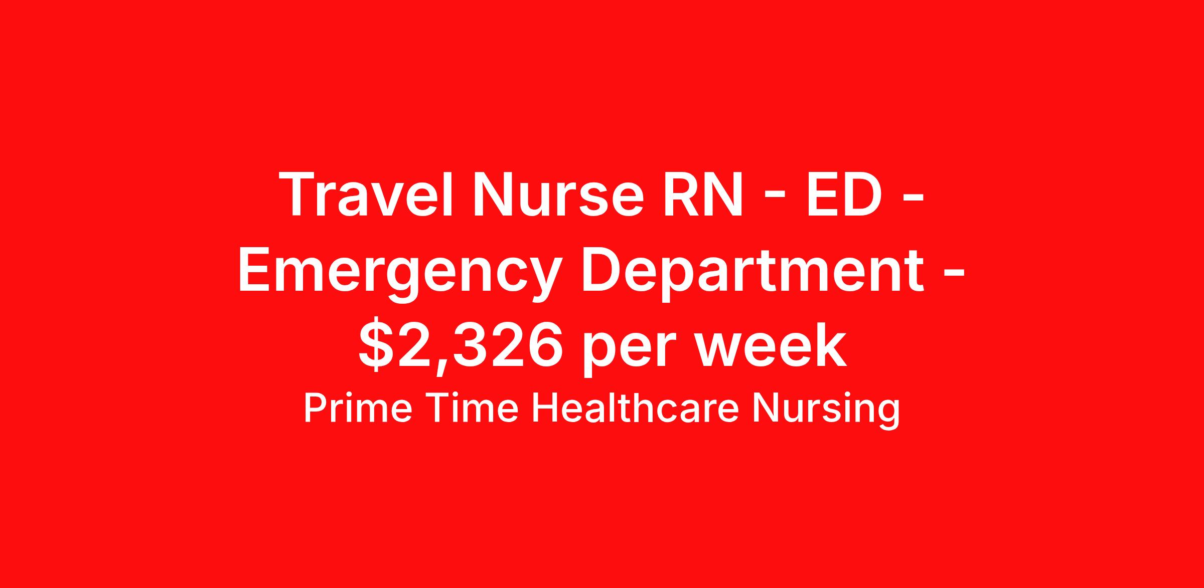 Prime Time Healthcare Nursing is seeking a travel nurse RN ED - Emergency Department for a travel nursing job in Farmington, New Mexico. Job Description & Requirements Specialty: ED - Emergency Department Discipline: RN Start Date: 04/13/2026 Duration: 13 weeks 36 hours per week Shift: 12 hours, days Employment Type: Travel About Prime Time Healthcare Nursing Prime Time Healthcare is a leading provider of traveling healthcare professionals nationwide. Our agency specializes in the placement of RNs, LPNs, CNAs, and Allied Health professionals. Join the fun and experience why healthcare professionals and client facilities are joining the Prime Time TEAM. Benefits 401k retirement plan Health savings account Referral bonus Medical benefits Dental benefits Vision benefits