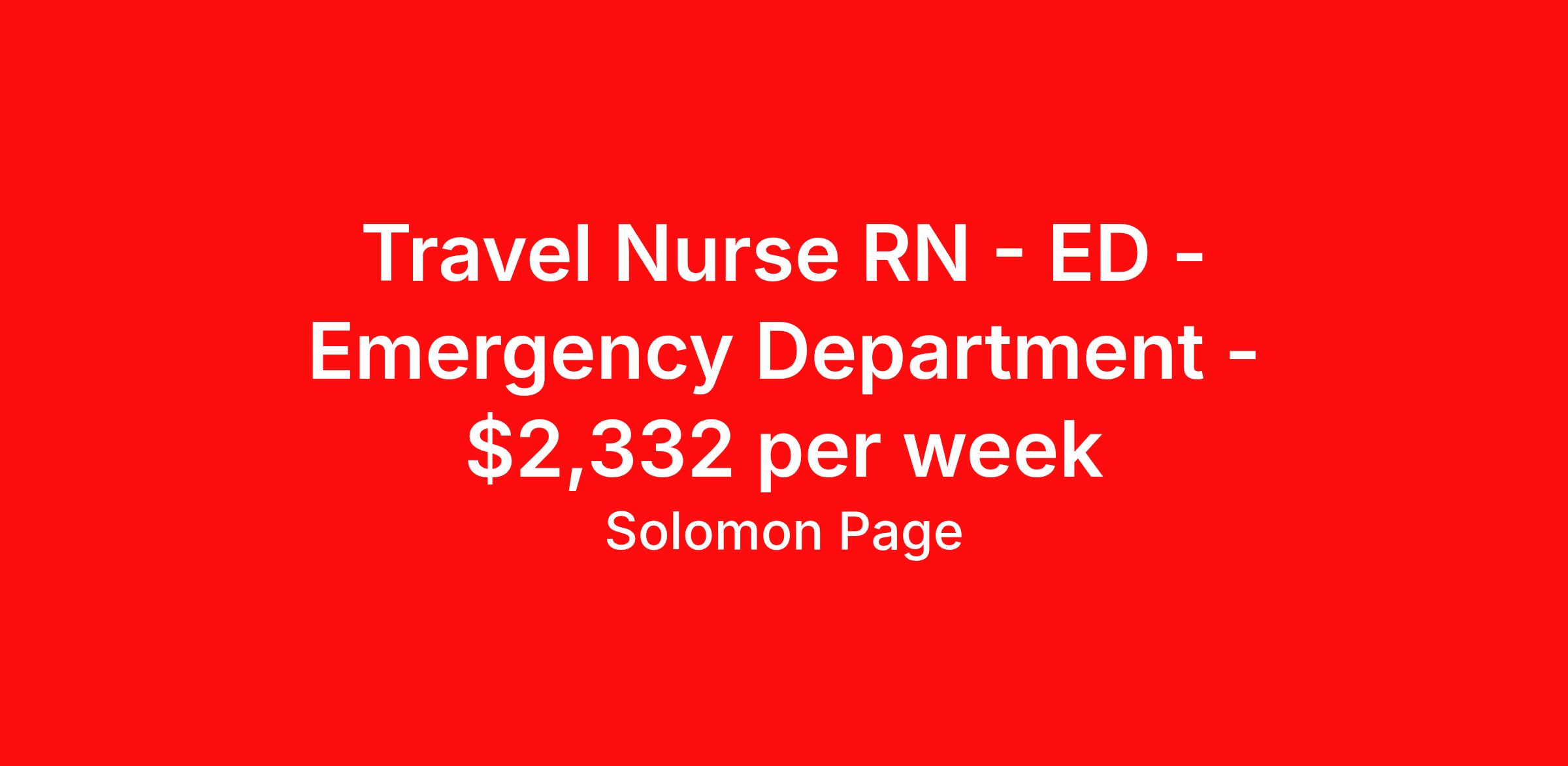 Travel Nurse RN - ED - Emergency Department - $2,332 per week