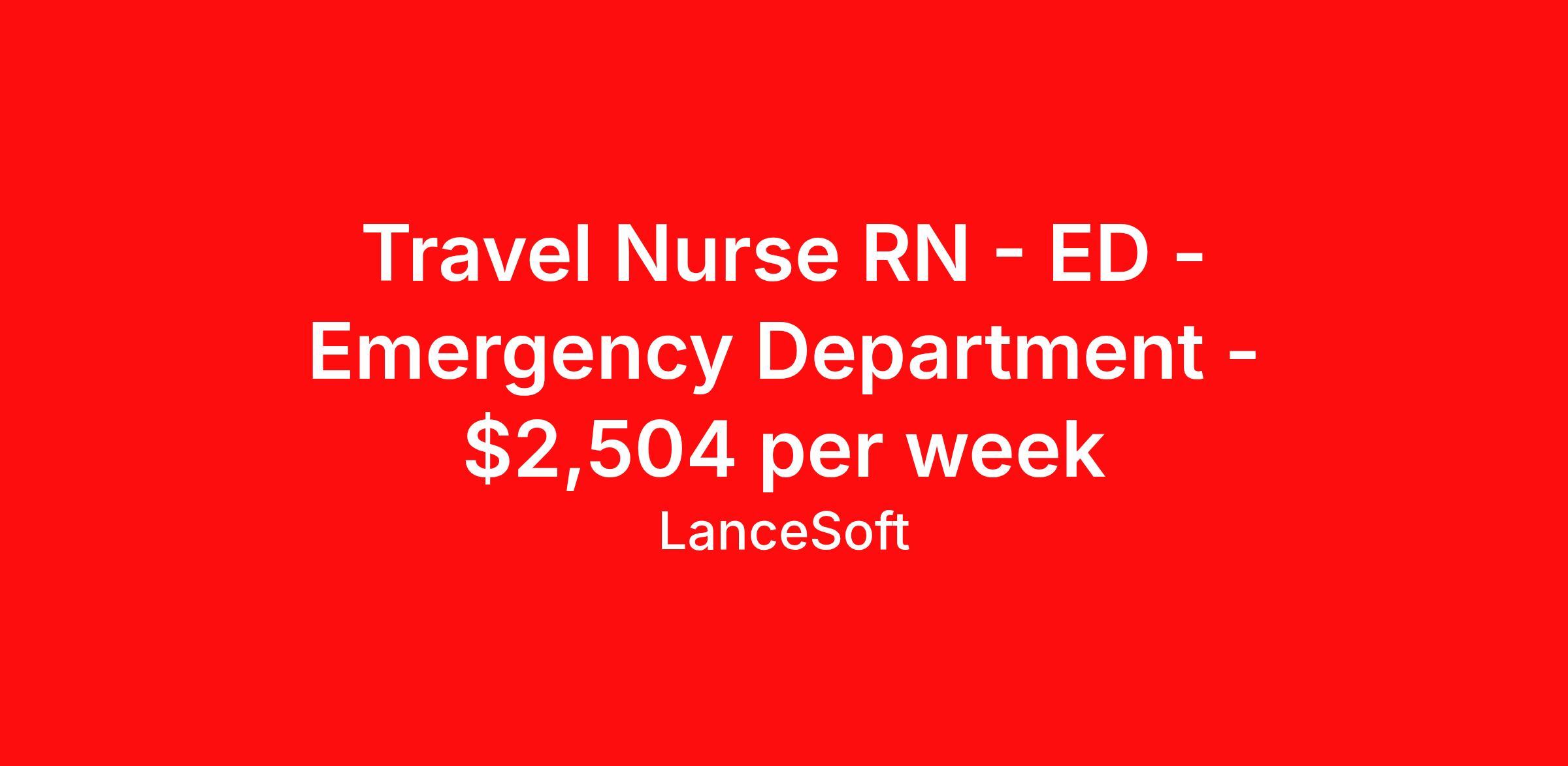 Travel Nurse RN - ED - Emergency Department - $2,504 per week