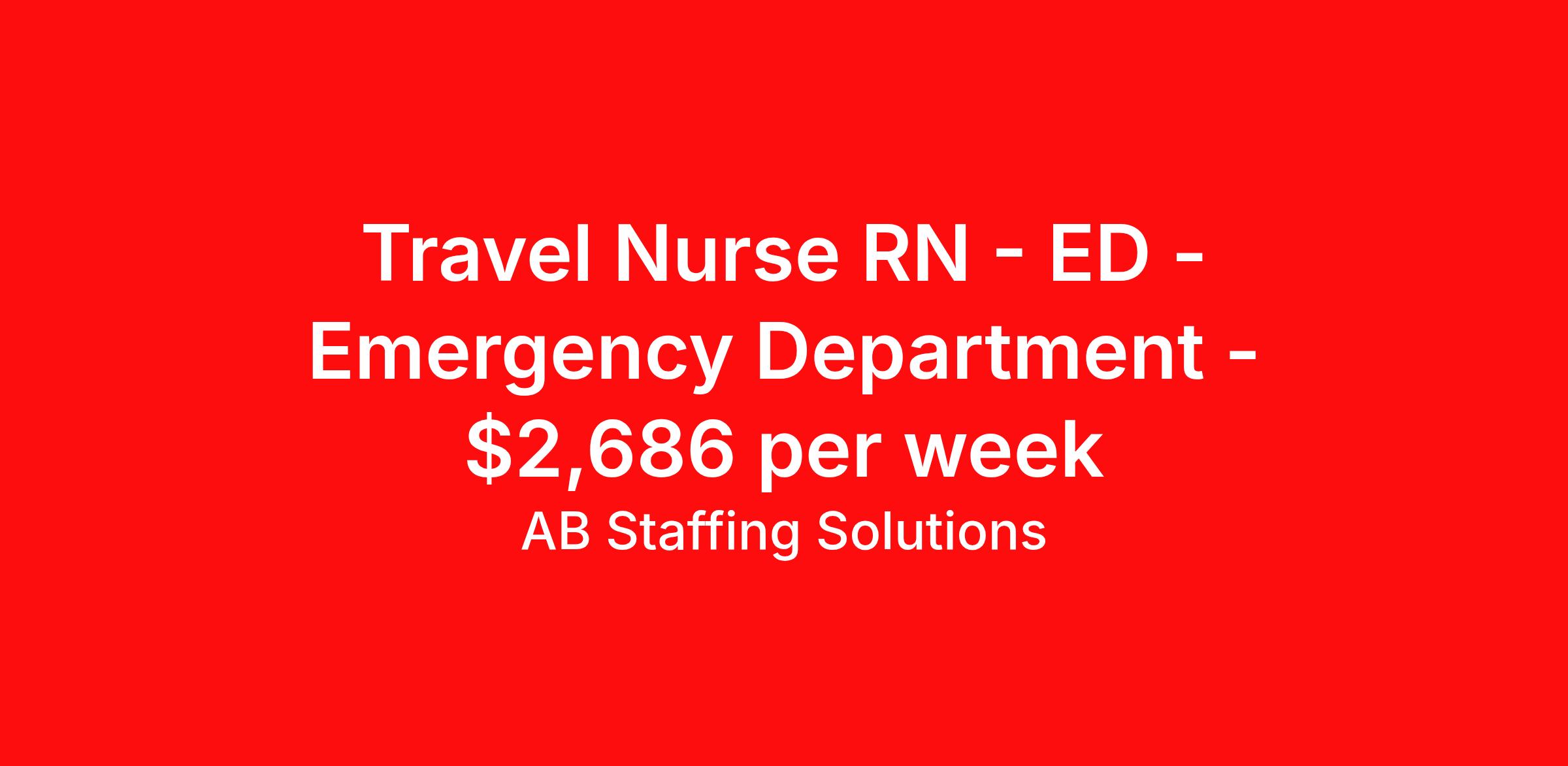AB Staffing Solutions is seeking a travel nurse RN ED - Emergency Department for a travel nursing job in Honesdale, Pennsylvania. Job Description & Requirements Specialty: ED - Emergency Department Discipline: RN Start Date: ASAP Duration: 13 weeks 40 hours per week Shift: 8 hours Employment Type: Travel AB Staffing Solutions Job ID 117278. Pay package is based on 8 hour shifts and 40 hours per week (subject to confirmation) with tax-free stipend amount to be determined. About AB Staffing Solutions AB Staffing Solutions is a nationwide leader in travel nurse and healthcare staffing and has been providing strategic healthcare solutions since 2022. For the last 4 years ABSS has been on the prestigious list of Forbes America’s Best Recruiting Firms. We strive to be the leading provider of healthcare personnel at government and commercial medical facilities across the country. Creating a customized experience for each provider and understanding how to create solutions for our clients is at the heart of what we do. Benefits Medical benefits Dental benefits Vision benefits Weekly pay Referral bonus 401k retirement plan