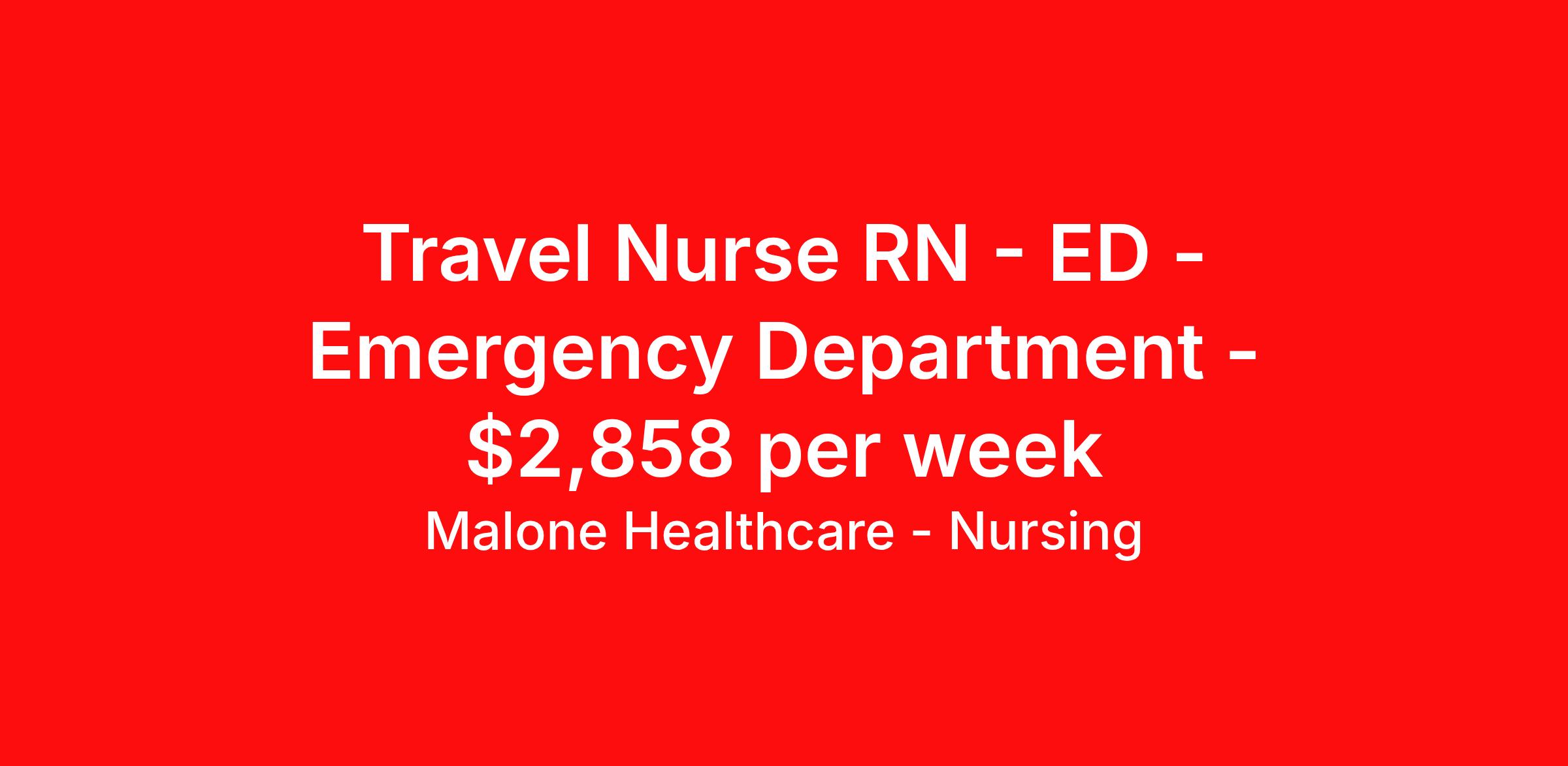 Malone Healthcare - Nursing is seeking a travel nurse RN ED - Emergency Department for a travel nursing job in Hazard, Kentucky. Job Description & Requirements Specialty: ED - Emergency Department Discipline: RN Start Date: 03/23/2026 Duration: 13 weeks 48 hours per week Shift: 12 hours, nights Employment Type: Travel Emergency Room RN - Hazard KY - 12 hour Nights Job Description: - 2 Plus yrs/ current experience required- large Hospital experience required - 23 Bed ER - Previous travel experience preferred. - BLS, ACLS, NIH, TNCC, PALS, CPI are required - 100 ml radius, Schedule is 36/48 for the two week pay period. Emergency Room RN - Hazard KY - 12 hour Nights Job Description: - 2 Plus yrs/ current experience required- large Hospital experience required - 23 Bed ER - Previous travel experience preferred. - BLS, ACLS, NIH, TNCC, PALS, CPI are required - 100 ml radius, Schedule is 36/48 for the two week pay period. About Malone Healthcare - Nursing With a commitment to providing a higher standard of service and experience in patient care, Malone Healthcare places expert nurses and allied health professionals in rewarding careers throughout the United States. As a leading healthcare staffing agency, Malone’s focus on compliance and integrity translates to a seamless experience for our team members and partner facilities. When you work with Malone Healthcare, you can rely on over 50 years of proven experience placing exceptional professionals in quality healthcare settings. Benefits Weekly pay Holiday Pay Guaranteed Hours Continuing Education 401k retirement plan Pet insurance Referral bonus Medical benefits Dental benefits Vision benefits License and certification reimbursement Life insurance