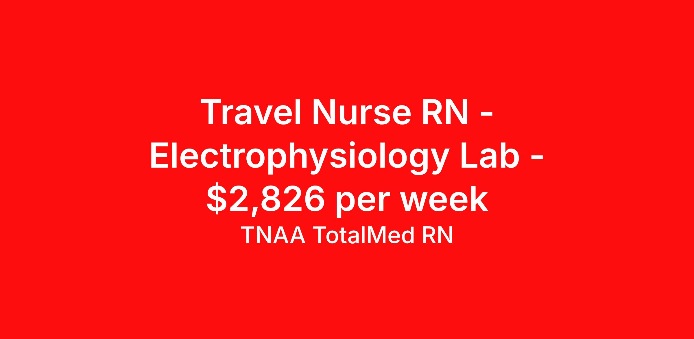 TNAA TotalMed RN is seeking a travel nurse RN Electrophysiology Lab for a travel nursing job in La Crosse, Wisconsin. Job Description & Requirements Specialty: Electrophysiology Lab Discipline: RN Duration: 13 weeks 40 hours per week Shift: 8 hours, days Employment Type: Travel We're looking for Registered Nurses (RN) for an immediate travel opening in La Crosse, WI for our Electrophysiology(EP) Lab. The right RN should have at least 1 year of experience in an EP Lab setting. Read below for more details. As an EP Lab RN, you'll work with a highly skilled team of medical professionals in the EP lab providing assistance to the physician, including maintaining and monitoring of equipment, as well as assisting with therapeutic and diagnostic procedures. As an EP Lab Travel Nurse, you should be prepared to perform the following tasks: Learn complex technologies effectively Assist physicians with procedures that diagnose and treat heart rhythm problems Assist with ablations, pacemaker and defibrillator implants, cardioversions, loop recorder implants and more Assist with diagnostic studies such as cardiac mapping and EP studies EP Lab Travel Nurses should be able to stand and walk for long periods of time, as well as bend, lean and stoop without difficulty. RNs should be able to easily lift 20 pounds. Moving or lifting of patients may require lifting of up to 50 pounds at times. Because of the fast-paced environment, EP Lab Travel Nurses must possess good skills for coping with stress and be able to relate to people of all ages and backgrounds. Requirements*: BLS, ACLS, 2 Years * Additional certifications may be required before beginning an assignment. TotalMed Travel Job ID 1389335. Pay package is based on 8 hour shifts and 40 hours per week (subject to confirmation) with tax-free stipend amount to be determined. Posted job title: EP Lab - EP Lab RN - Travel Nurse About TNAA TotalMed RN TotalMed is a Top Ten, travel nursing and healthcare staffing agency with the mission of igniting purpose in healthcare. The organization staffs nurses, therapists, pharmacists, and other clinicians of all specialties in all 50 states. They offer local and travel jobs and match caregivers with the right organization to assist both facilities and patients. As an organization, they focus on putting highly-skilled staff into facilities to ensure adequate staffing for a better patient experience. TotalMed specializes in recruiting and placing healthcare professionals in travel, PRN, and permanent positions across the country in Nursing and Allied Health. Throughout 2020, the organization filled roles at even the most short-staffed facilities during the most challenging time in healthcare. By matching the right travel healthcare professional with the right organization, TotalMed continues to offer a lifeline to facilities and their patients. Benefits Weekly pay Guaranteed Hours Continuing Education 401k retirement plan Sick pay Wellness and fitness programs Referral bonus Employee assistance programs Medical benefits Dental benefits Vision benefits Benefits start day 1