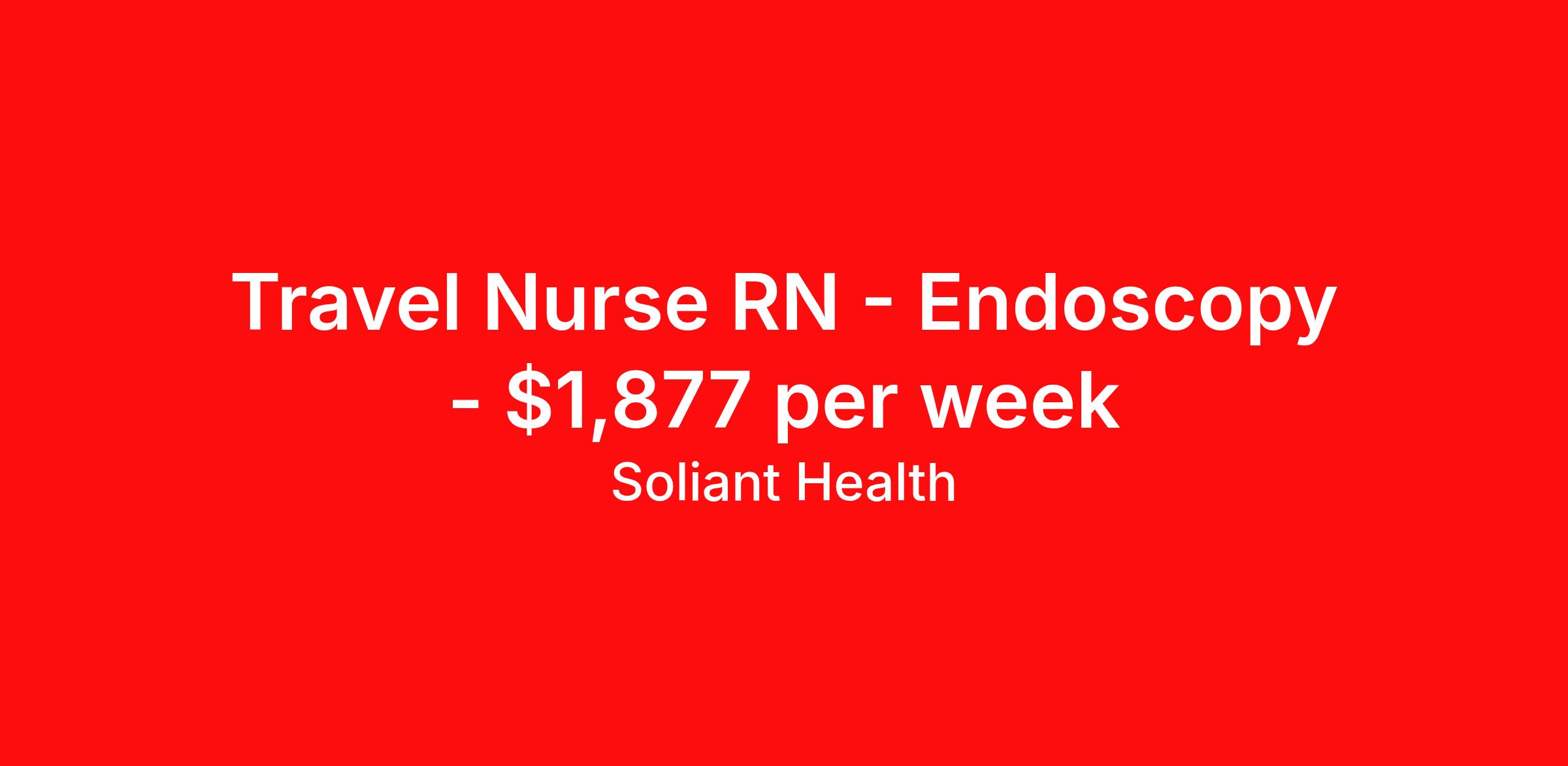 Soliant Health is seeking a travel nurse RN Endoscopy for a travel nursing job in Fort Myers, Florida. Job Description & Requirements Specialty: Endoscopy Discipline: RN Start Date: ASAP Duration: 13 weeks 40 hours per week Shift: 10 hours, days Employment Type: Travel ASAP START REQUIRED GCMC Endo RN: 2 years of Endo experience required. BLS & ACLS required. Pre-op and post op experience required. Prior travel experience preferred. Shift: 4-10Hour Shifts 0730-1800 with a floating day off, Monday-Friday, plus call. Call on holidays, weekends, and weekdays must be within 30 minutes from hospital when on call. EMR: Epic. MUST HAVE 5 YEARS OF EXPERIENCE. Soliant Health Job ID 8803739. Pay package is based on 10 hour shifts and 40 hours per week (subject to confirmation) with tax-free stipend amount to be determined. About Soliant Health With Soliant, you become part of something big. We believe that together, we’re better. Soliant fosters an environment of giving – of our time and resources – to the communities we serve. We do our part corporately by providing our healthcare professionals with unmatched career opportunities, compensation and personalized service that goes beyond job placement. Our healthcare professionals are then free to enrich the communities in which they live, volunteering or giving where their hearts lead them. We’re a different kind of healthcare staffing agency. We build communities of care wherever we are – on the job and in the neighborhoods in which we live. Benefits Weekly pay 401k retirement plan License and certification reimbursement