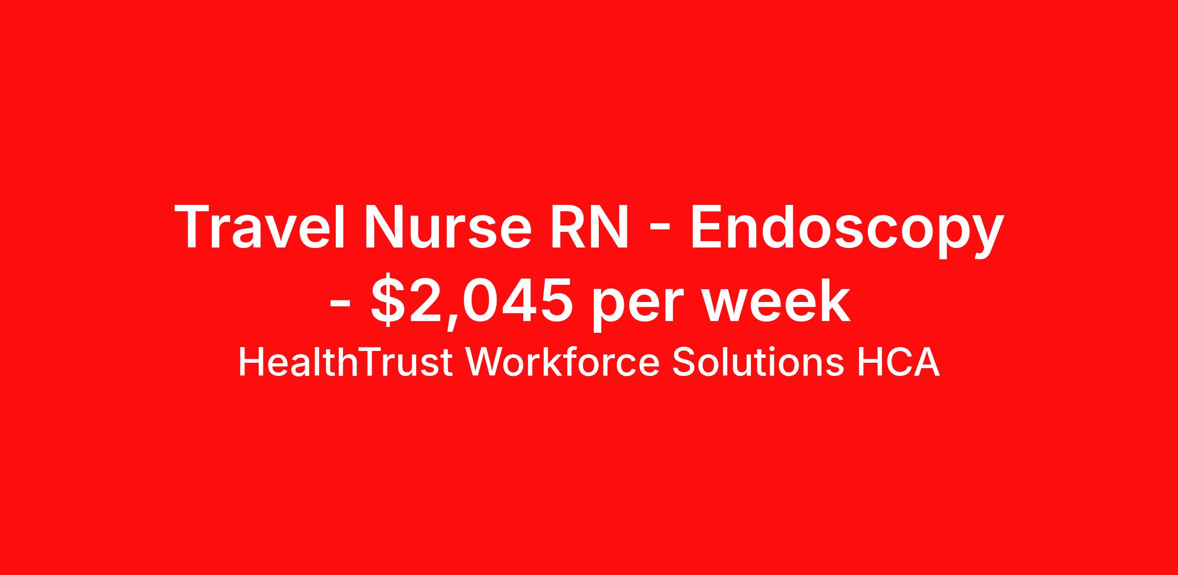 HealthTrust Workforce Solutions HCA is seeking a travel nurse RN Endoscopy for a travel nursing job in San Antonio, Texas. Job Description & Requirements Specialty: Endoscopy Discipline: RN Duration: 13 weeks 40 hours per week Shift: 8 hours, days Employment Type: Travel GI/ENDO Lab Call required and alternating weekends Type of equipment – Olympus scopes, Medivator, Scope Buddy 2 · EMR -Meditech Must have : candidates without these skills will not be considered for the role. · EGD, Colonoscopy, ERCP Procedures · Able to perform Moderate sedation with another RN REQUIRED CERTIFICATIONS: · ACLS About HealthTrust Workforce Solutions HCA At HealthTrust Workforce Solutions, healthcare is not just about the four walls of a facility but about the people who provide and receive care. Our focus is on empowering healthcare professionals to deliver exceptional patient experiences by providing them with the necessary skills, tools, and support. We partner with healthcare facilities nationwide to ensure that the right professionals are in the right roles. We prioritize our clinicians by giving them a voice and access to opportunities to fulfill their mission of improving lives by providing quality patient care. We are committed to our core values of Trust, Innovation, Adaptability, Courage, and Accountability. We are dedicated to positively impacting the healthcare industry by providing first-priority access to more than 200,000 jobs nationwide to our healthcare professionals. Join us and be part of the HealthTrust family, where you can make a difference every day. We embrace our changing environment, and we maintain a culture that has a rich tradition of transforming itself to meet the challenges of the future. MISSION STATEMENT While putting great people in the right roles is essential, our mission is far greater. We want our clinicians to be part of the HealthTrust family, where healthcare professionals have a voice and are empowered with the right tools and opportunities to fulfill their personal mission of improving lives. Plus, as a preferred partner to thousands of top-performing hospitals, we provide our healthcare professionals with first-priority access to more than 200,000 jobs nationwide. Benefits Dental benefits Vision benefits Referral bonus Continuing Education Life insurance