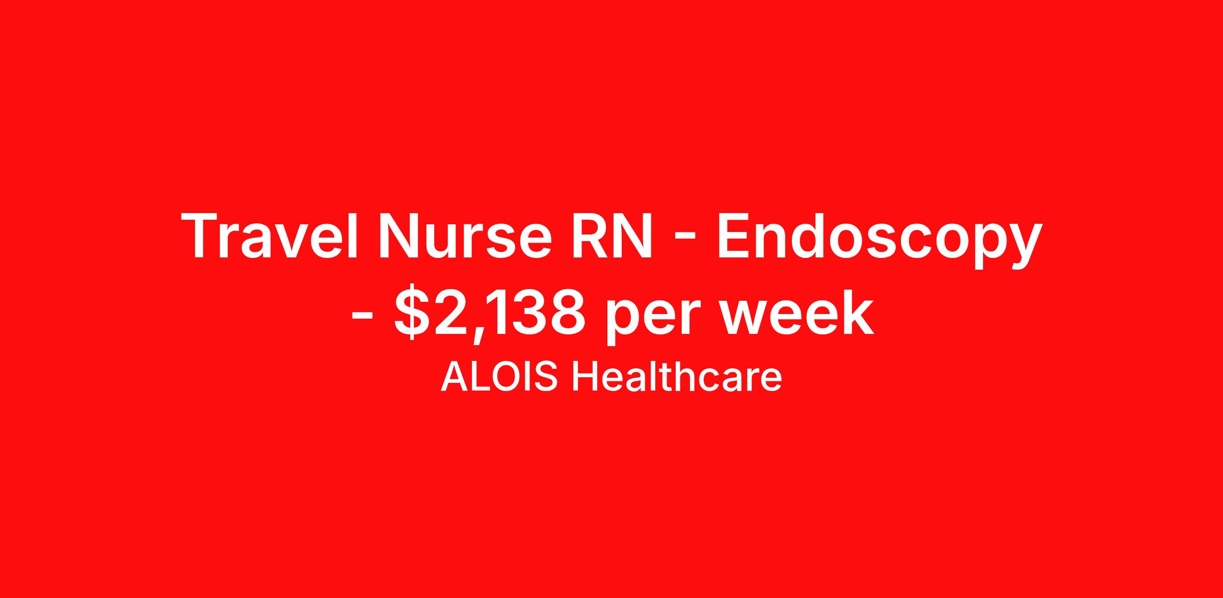 ALOIS Healthcare is seeking a travel nurse RN Endoscopy for a travel nursing job in Atlanta, Georgia. Job Description & Requirements Specialty: Endoscopy Discipline: RN Start Date: 04/13/2026 Duration: 13 weeks 40 hours per week Shift: 8 hours, days Employment Type: Travel A Gastrointestinal (GI) Lab nurse is an RN who specializes in GI tract diseases and disorders, such as Irritable Bowel Syndrome, acid reflux, and Crohn's disease, among many others. GI nurses assist physicians with various procedures and treatments, and provide patient education. ALOIS Healthcare Job ID 17988636. Pay package is based on 8 hour shifts and 40.0 hours per week (subject to confirmation) with tax-free stipend amount to be determined. Posted job title: RN GI Lab/Endoscopy About ALOIS Healthcare Why ALOIS Healthcare? ALOIS means “brave warrior” and that’s what you are- Warrior in Scrubs! Just as you advocate for your patients, we will advocate for you. The pay you deserve. The support you need. We’re in your corner for every battle – because you shouldn’t settle for anything less when it comes to your career. We offer: · Industry-leading pay Generous cost of living and housing stipends · Opportunities for referral, sign-on, and extension bonuses · Weekly health insurance or health insurance Marketplace weekly bonus · Continuing education credits We’re proud to be recognized globally as a certified minority-owned staffing supplier. At ALOIS Healthcare: · Everyone Matters · We are Performance Driven · We are Open, Honest and Direct · We are Transparent · We are Inclusive · We Do the Right Thing We care about you - and your success is our success.