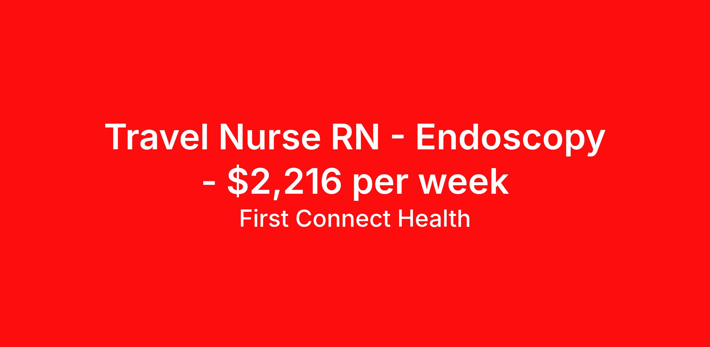 First Connect Health is seeking a travel nurse RN Endoscopy for a travel nursing job in Madison, Wisconsin. Job Description & Requirements Specialty: Endoscopy Discipline: RN Start Date: 03/30/2026 Duration: 13 weeks 40 hours per week Shift: 8 hours, days Employment Type: Travel Title: RN Endo Location: Madison, WI 53792 Duration: 13 Weeks Shift: Day 5x8-Hour (06:30 - 15:00) Requirements: Years of Experience: 2 year(s) Note: Epic exp required, within past 12 months preferred Charting System: Required, Epic Teaching Hospital Experience: Required Travel Experience Required: Yes Certfications: Certs marked with * are preferred ACLS, BLS, CGRN* Description: Day/Evening, M-F 8 hr shift with rotating start times between 0630am and 0900am. No call requirement, may need to stay past end of shift to finish schedule. Experience: Must be able to perform Moderate Sedation in procedure, and pre/post all levels of care including PACU/Phase I and Phase II recovery. Must have experience recent experience in recovering sedated GI and pulmonary procedures such as ERCP, EUS, EGD, Colonoscopy, endoscopy/Bronchoscopy (some patients have general anesthesia rather than moderate sedation) Traveler must have completed two years of experience within last 3 years.? Traveler must have experience in an Academic Level 1-Trauma center or similar size hospital Epic experience required – preferred within the last 12 months Licensure and Certification:? Traveler must have WI nursing license or compact license from their permanent address state.? BLS and ACLS – must be certified through American Heart Association ONLY? Telemetry Traveler must have Basic Arrhythmia experience. Traveler will be required to pass Telemetry test prior to being cleared to start. We are seeking a?Registered Nurse (RN)?to: Provide care for patients during GI and Bronchoscopy procedures including the administration of sedation. Be an integral part of a surgical team that performs multispecialty procedures. Assume the overall responsibility for management of the operating room to which you are assigned. Facility Requirement: Traveler’s permanent address must be 50 miles from assigned primary work site location. Floating - Travelers are the first to float.?Depending on the current staffing needs,?the traveler may have shifts scheduled in multiple units and/or at different locations within the organization. During the traveler’s assignment, if the primary department no longer has a need, shifts will be re-assigned to another department in order to complete the contract. Orientation Paid. 3224327 About First Connect Health At First Connect Health , we take pride in being a Joint Commission–certified healthcare staffing agency , headquartered in Newark, New Jersey. This prestigious certification is more than just a seal — it's a reflection of our commitment to excellence, safety, and quality in everything we do. By meeting the rigorous standards set by The Joint Commission, one of the most respected accrediting bodies in healthcare, we've demonstrated that our processes, compliance, and patient care standards are aligned with the highest levels of quality in the industry. But our dedication goes beyond certifications. Nurses choose First Connect Health because: ✅ Trust and Transparency: We foster honest communication, timely updates, and full transparency throughout your placement journey. ✅ Best Pay & Benefits: We offer industry-leading compensation packages, along with benefits that support your career goals. ✅ Flexibility & Choice: Whether you're seeking short-term assignments, long-term contracts, or local opportunities, we provide the flexibility to suit your preferences. ✅ Personalized Support: Our recruiters take the time to understand your needs, guiding you with care, respect, and responsiveness at every step. When you work with First Connect Health, you're not just another number — you're a valued professional. Join a team that’s focused on your success, your well-being, and your future in healthcare. Benefits Medical benefits Sick pay 401k retirement plan Weekly pay Referral bonus