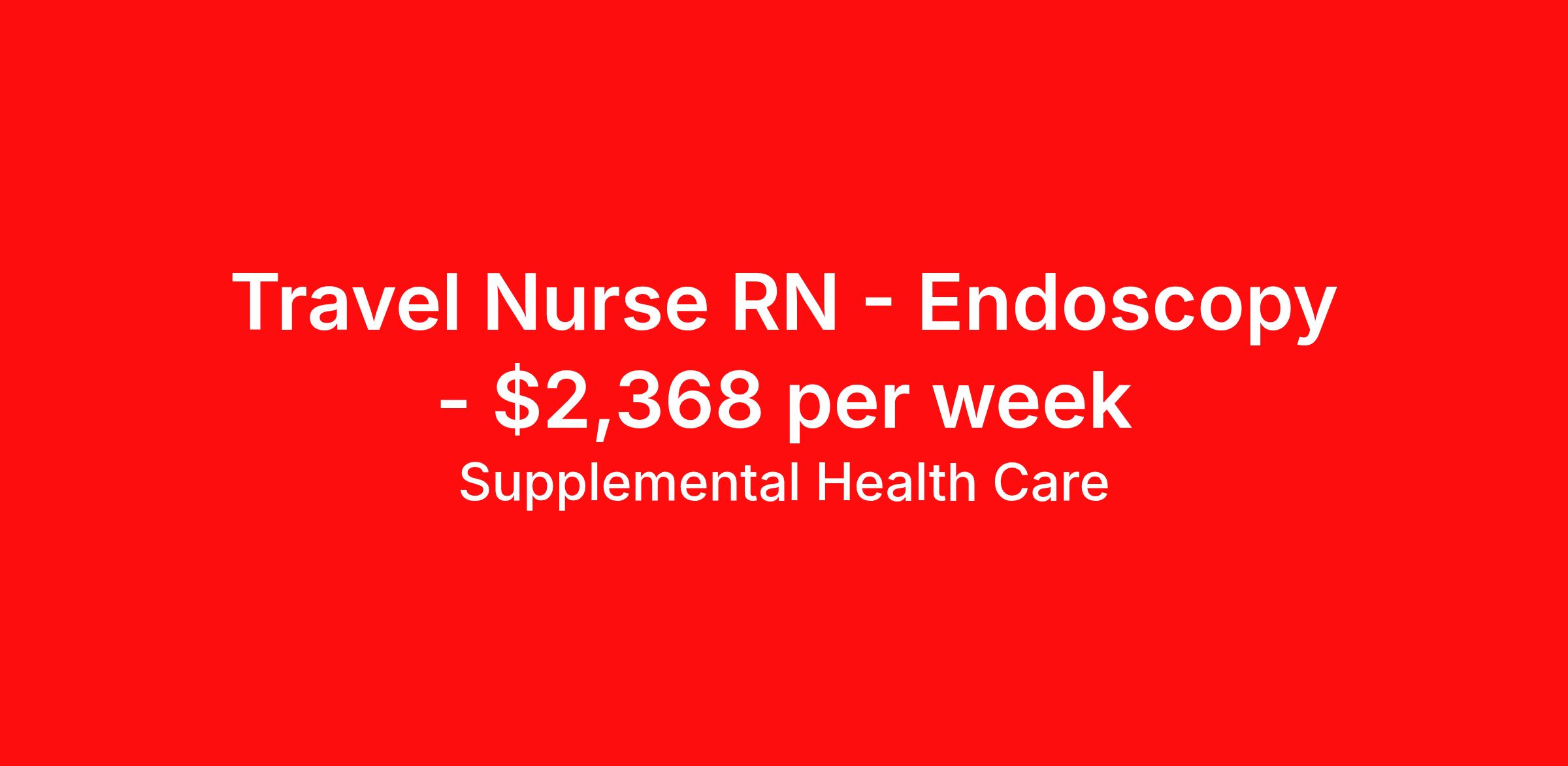 Supplemental Health Care is seeking a travel nurse RN Endoscopy for a travel nursing job in Cincinnati, Ohio. Job Description & Requirements Specialty: Endoscopy Discipline: RN Start Date: ASAP Duration: 13 weeks 40 hours per week Shift: 8 hours, days Employment Type: Travel Job Description: Supplemental Health Care is hiring Endoscopy Registered Nurses for contract assignments at partnering hospitals in Cincinnati, Ohio. Whether you’re looking to travel or stay local, we’re committed to helping Endoscopy RNs find the right fit with top hospitals across the country. With more than 40 years of experience in healthcare staffing, Supplemental Health Care offers reliable support, competitive pay, and great benefits every step of the way. Qualifications: Current Ohio Nursing License American Heart Association BLS 2 years of recent Endoscopy nursing experience Endoscopy RN Contract Details: $2,140 - $2,368 per week* 13-week contract with possibility to extend AM shift available Most contracts offer 10 or 12 hour shifts Key Responsibilities: Nurse will be expected to care for patients experiencing existing or potential GI tract problems The ideal RN will have previous acute nursing experience and be comfortable with patients of all ages *Estimated weekly payment may include both taxable wages and tax-free reimbursements for meals, housing, and incidentals. Please speak with a recruiter for details. Jump in today! Apply now for this Endoscopy RN contract. What We Offer: Full medical, dental, vision, life, and even pet insurance! Round the clock support. No matter where you are or what time it is, Supplemental Health Care is standing by. SHC's Share the Care referral program is the most dynamic, profitable referral program in the industry. 401(k) Retirement Savings Program with a wide range of investment options. Discounted and free online access to CEU courses through Supplemental University. Supplemental Health Care is an Equal Opportunity Employer. All candidates, including veterans and those with disabilities, are encouraged to apply. SHC will consider for employment qualified applicants with criminal histories in a manner consistent with the requirements of applicable local, state, or federal law. To learn more, visit www.shccares.com/eeo Supplemental Health Care Job ID 1471483. Pay package is based on 8 hour shifts and 40 hours per week (subject to confirmation) with tax-free stipend amount to be determined. Posted job title: Endoscopy Registered Nurse About Supplemental Health Care At Supplemental Health Care, a simple belief in the power of caring guides a unique commitment to world-class service in healthcare staffing. For 40 years, we’ve supported talented professionals pursuing their life calling in hospitals, schools, home health, corrections, behavioral health, and other settings. At SHC, we inspire vital connections and enrich lives and inspire better outcomes. As recipients of the Best in Staffing Awards for both Client and Talent, Supplemental Health Care is proud to be among only 2% of staffing companies singled out for the distinction based on the real feedback of our employees and the clients we serve. SHC has also earned The Joint Commission’s Gold Seal of Approval and is named among the Largest Health Care Staffing companies in the United States by Staffing Industry Analysts. We are also thrilled to recognize our very own SLP, Dr. Kelly Byrd as the American Staffing Association 2024 National Staffing Employee of the Year and Health Care Sector All-Star. We’re honored to connect Dr. Byrd to employment, share her incredible story, and support her family literacy nonprofit. For everyone that we serve, SHC is the place where caring hearts thrive. Benefits Referral bonus Benefits start day 1 401k retirement plan Continuing Education Discount program Health savings account