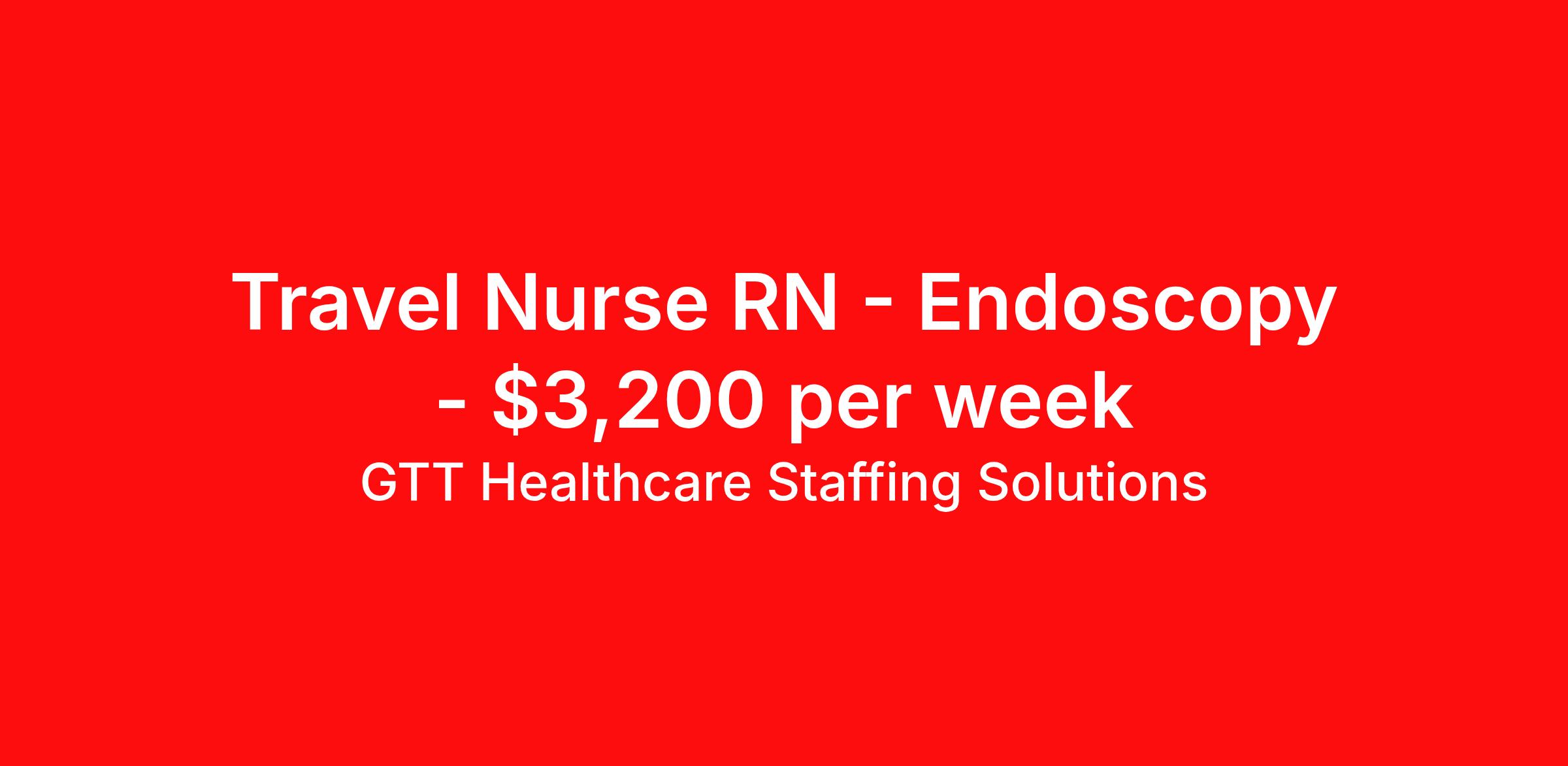 GTT Healthcare Staffing Solutions is seeking a travel nurse RN Endoscopy for a travel nursing job in Boston, Massachusetts. Job Description & Requirements Specialty: Endoscopy Discipline: RN Start Date: 04/20/2026 Duration: 13 weeks 40 hours per week Shift: 10 hours, days Employment Type: Travel Title: Registered Nurse – Nurse Manager Specialty: Endoscopy (GI Unit – East) Location: Boston, MA Shift: 10H Days (40 hours/week) Radius Rule: Standard / Local Job Requirements: Must have STRONG ENDOSCOPY SKILLS AND MANAGEMENT EXPERIENCE . Must have an active Massachusetts RN license and BLS–AHA . Epic EMR experience required . Endoscopy experience is mandatory . Job expectations – Leadership and nurse manager experience required for this role. Endoscopy experience REQUIRED . Candidate must have excellent leadership skills and be willing to jump in and run the unit effectively and immediately . Travel experience preferred due to a highly efficient, volume-producing GI department . About GTT Healthcare Staffing Solutions GTT Healthcare is a specialized healthcare staffing division of Global Technical Talent, supporting hospitals and healthcare systems across the United States. We connect travel and permanent nurses and allied health professionals with rewarding opportunities at leading medical facilities in more than 30 states. Our consultants are supported by dedicated healthcare recruiters who advocate for their goals, provide transparent communication, and guide them through every step of the assignment lifecycle. We prioritize flexibility, consistent pay, and access to comprehensive benefits so clinicians can focus on delivering exceptional patient care. Benefits Weekly pay Bereavement Medical benefits Dental benefits Vision benefits 401k retirement plan Referral bonus Sick pay Relocation bonus