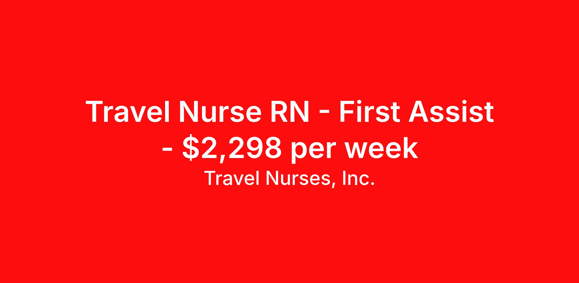 Travel Nurses, Inc. is seeking a travel nurse RN First Assist for a travel nursing job in Washington, Missouri. Job Description & Requirements Specialty: First Assist Discipline: RN Start Date: ASAP Duration: 13 weeks 36 hours per week Shift: 12 hours Employment Type: Travel Travel Nurses, Inc. Job ID 307032. Pay package is based on 12 hour shifts and 36 hours per week (subject to confirmation) with tax-free stipend amount to be determined. Posted job title: Travel: RNFA - Operating Room - Days About Travel Nurses, Inc. Travel Nurses, Inc. is a leading healthcare staffing agency that provides healthcare professionals with opportunities to work across the country. Founded by nurses in 1988, TNI has more than 30 years of experience in the industry. The agency initially focused on staffing operating room settings in the MidSouth. However, this quickly evolved to encompass all nursing specialties and allied health fields nationwide. At the heart of our mission is a profound respect for nurses, whom we consider the cornerstone of healthcare. This acknowledgment extends beyond the nursing profession alone. Travel Nurses, Inc. now proudly embraces a wide array of healthcare professionals, recognizing their crucial roles in our collective mission. Travel Nurses, Inc. is dedicated to providing comprehensive support and opportunities that will help facilitate complete career mobility in the healthcare field. Our commitment to transparency ensures that all professionals, not just nurses, can confidently accept any assignment without financial uncertainties. We prioritize our professionals’ well-being with comprehensive benefits packages, including day-one healthcare coverage, competitive salaries, bonuses and incentives. This underscores our unwavering commitment to offering the best possible rewards and support for all the professionals we serve. Benefits Weekly pay Continuing Education 401k retirement plan Wellness and fitness programs Mileage reimbursement Referral bonus Employee assistance programs Medical benefits Dental benefits Vision benefits Benefits start day 1 License and certification reimbursement Life insurance Retention bonus