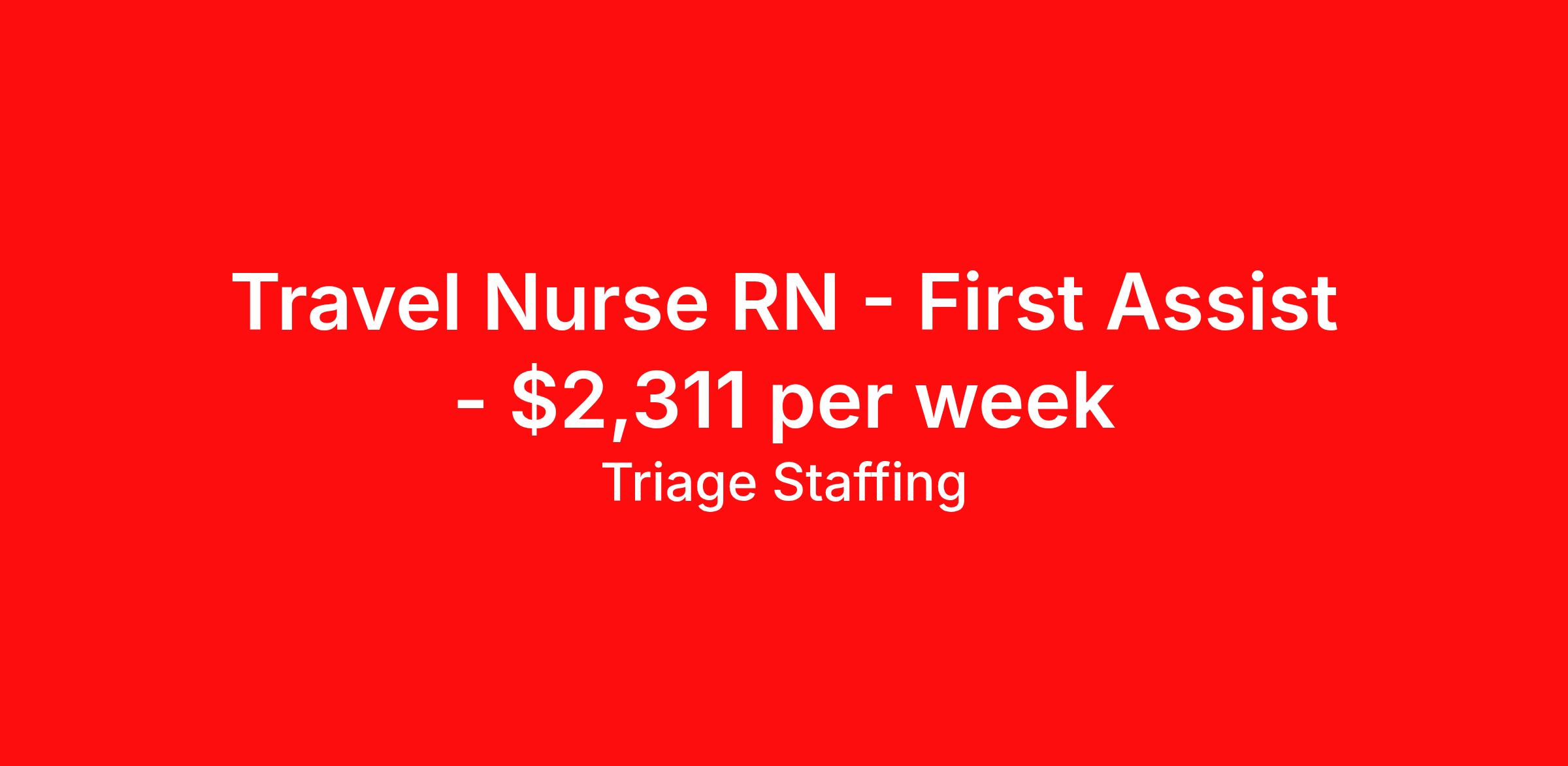 Triage Staffing is seeking a travel nurse RN First Assist for a travel nursing job in Saint Louis, Missouri. Job Description & Requirements Specialty: First Assist Discipline: RN Start Date: ASAP Duration: 13 weeks 36 hours per week Shift: 12 hours, flexible Employment Type: Travel Travel Nursing: Registered Nurse First Assistant Saint Louis Location: Saint Louis Start Date: 12/8/2025 Shift Details: 12H Variable 36 hours per week Length: 13 WEEKS Apply for specific facility details.RNFA Triage Staffing Job ID EWD94VHN. Posted job title: Nursing: Registered Nurse First Assistant About Triage Staffing At Triage, we prefer to be real . Real about expectations—both ours and yours. Real about how a decision you make today could affect your tomorrows. Real about how compensation actually works. Real about how great—or grating—your next supervisor may be. Being real allows everyone at Triage to be ready . Ready to serve you with real honesty. So if that gig near the ocean is really no day at the beach, or that third shift comes with a second-class rate, we tell you. So you can be ready, too. We staff all five major divisions of acute care—nursing, lab, radiology, cardiopulmonary and rehab therapy, offering: - Competitive, custom pay packages - One point of contact for both travelers and facilities (per division) - A reliable recruiter who's got your back throughout your entire assignment - In-house compliance and accounting specialists - A clinical liaison team available 24/7 to offer medical and professional support and career development - A mentoring program that is run and managed by actual clinicians—yeah, you read that right - And more (because of course there’s more) Are we the biggest? No. Are we the best? That’s rather subjective, but we’re trying to be. Will we work like hell to get you as close to your idea of heaven as possible? Yes. Yes, we will. Benefits: Day One comprehensive, nationwide insurance plans for health, vision and dental and life—including a HSA option Day One 401(k) program with employer-matching contributions once eligible Facility cancelling protection—your time is money on and off-the-clock Guaranteed hours Weekly paychecks via direct deposit Earned vacation bonuses for time worked Paid holidays Employee assistance program (EAP)—your mental health is important, too Continuing education, certification and licensing reimbursement Workers comp—because accidents happen Top-rated professional liability insurance Company provided housing options Referral bonus—$750 in your pocket after they’ve completed a 13-week assignment