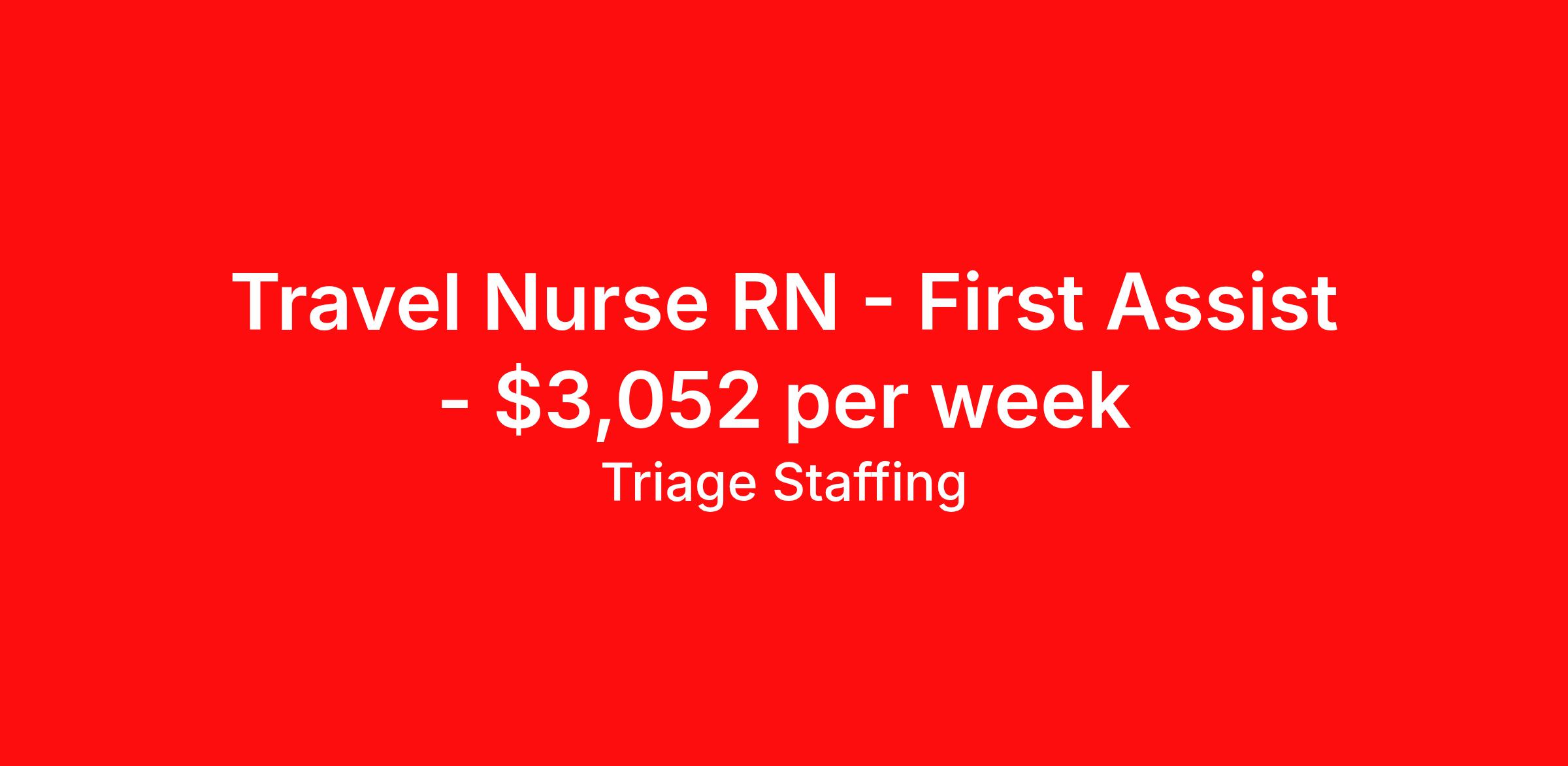 Triage Staffing is seeking a travel nurse RN First Assist for a travel nursing job in Pittsfield, Massachusetts. Job Description & Requirements Specialty: First Assist Discipline: RN Start Date: 04/20/2026 Duration: 13 weeks 40 hours per week Shift: 10 hours, days Employment Type: Travel Travel Nursing: Registered Nurse First Assistant Massachusetts Location: Massachusetts Start Date: 4/20/2026 Shift Details: 10H Days 40 hours per week Length: 13 WEEKS Apply for specific facility details.RNFA Triage Staffing Job ID WJG9DEWR. Posted job title: Nursing: Registered Nurse First Assistant About Triage Staffing At Triage, we prefer to be real . Real about expectations—both ours and yours. Real about how a decision you make today could affect your tomorrows. Real about how compensation actually works. Real about how great—or grating—your next supervisor may be. Being real allows everyone at Triage to be ready . Ready to serve you with real honesty. So if that gig near the ocean is really no day at the beach, or that third shift comes with a second-class rate, we tell you. So you can be ready, too. We staff all five major divisions of acute care—nursing, lab, radiology, cardiopulmonary and rehab therapy, offering: - Competitive, custom pay packages - One point of contact for both travelers and facilities (per division) - A reliable recruiter who's got your back throughout your entire assignment - In-house compliance and accounting specialists - A clinical liaison team available 24/7 to offer medical and professional support and career development - A mentoring program that is run and managed by actual clinicians—yeah, you read that right - And more (because of course there’s more) Are we the biggest? No. Are we the best? That’s rather subjective, but we’re trying to be. Will we work like hell to get you as close to your idea of heaven as possible? Yes. Yes, we will. Benefits: Day One comprehensive, nationwide insurance plans for health, vision and dental and life—including a HSA option Day One 401(k) program with employer-matching contributions once eligible Facility cancelling protection—your time is money on and off-the-clock Guaranteed hours Weekly paychecks via direct deposit Earned vacation bonuses for time worked Paid holidays Employee assistance program (EAP)—your mental health is important, too Continuing education, certification and licensing reimbursement Workers comp—because accidents happen Top-rated professional liability insurance Company provided housing options Referral bonus—$750 in your pocket after they’ve completed a 13-week assignment