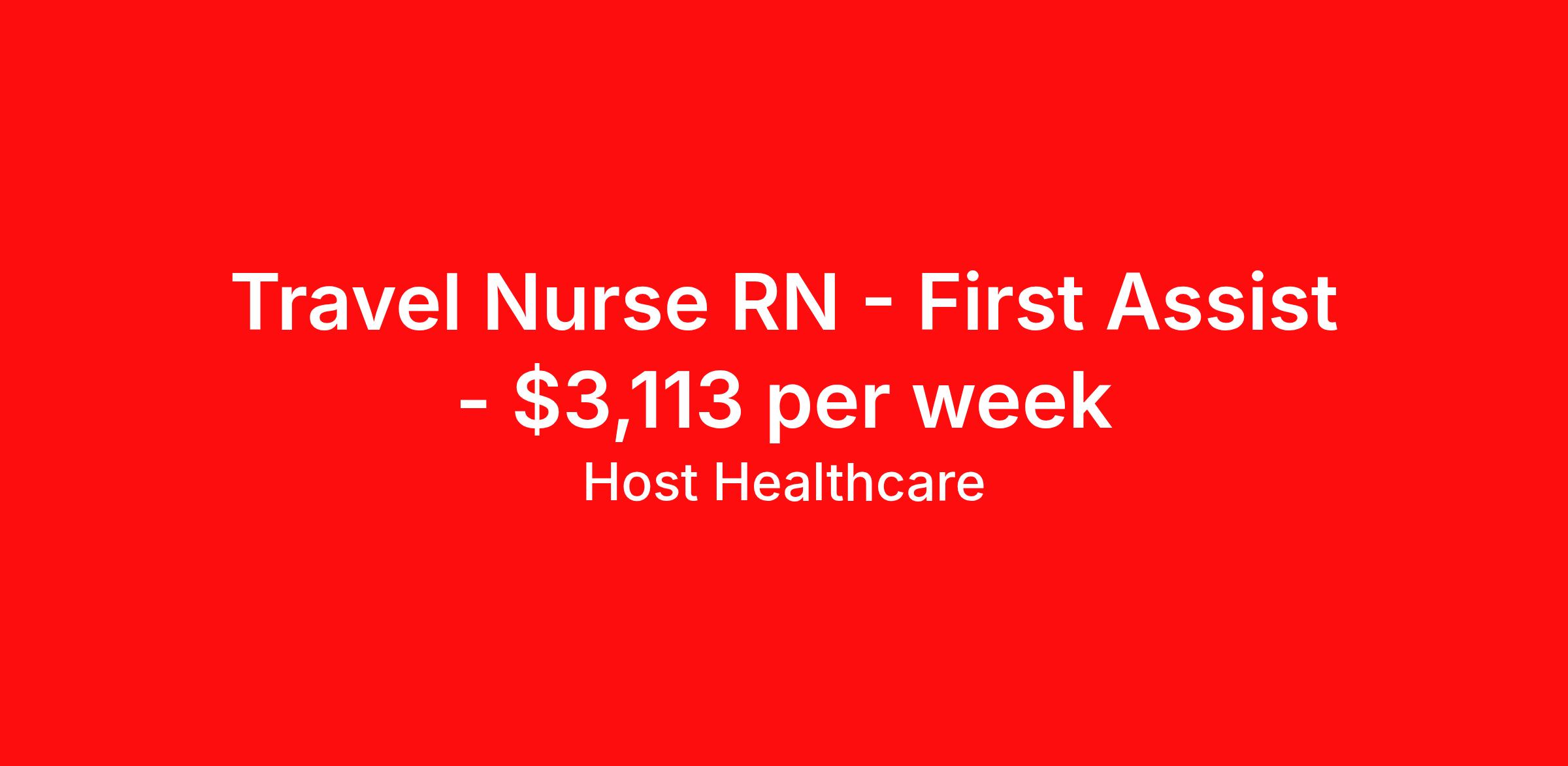 Host Healthcare is seeking a travel nurse RN First Assist for a travel nursing job in Pittsfield, Massachusetts. Job Description & Requirements Specialty: First Assist Discipline: RN Start Date: 04/20/2026 Duration: 13 weeks 40 hours per week Shift: 8 hours, days Employment Type: Travel Host Healthcare Job ID a1fVX000002zwdpYAA. Pay package is based on 8 hour shifts and 40 hours per week (subject to confirmation) with tax-free stipend amount to be determined. Posted job title: RN - OR-First Assist About Host Healthcare At Host Healthcare, we provide a truly comfortable experience as you explore your travel nursing, therapy, or allied career. We make your travel healthcare journey easy by taking care of all the details, so you don’t have to. We are on a mission to help others live better and we do this by helping the healers of the world be as comfortable as possible. With access to tens of thousands of travel nursing, therapy, and allied jobs in all 50 states, our responsive and friendly recruiters find your dream position based on what’s important to you. During your assignment, get access to premium benefits, including Day 1 medical that continues up to 30 days between assignments, 401K matching, travel reimbursements, dedicated housing support, and more. We also offer 24/7 support from our team and access to our on-staff clinicians so you can feel comfortable and confident throughout your entire assignment. Travel comfortably with Host Healthcare. Benefits Referral bonus School loan reimbursement Vision benefits Wellness and fitness programs Company provided housing options License and certification reimbursement Life insurance Medical benefits Mileage reimbursement Pet insurance Discount program Employee assistance programs Guaranteed Hours Health savings account Holiday Pay 401k retirement plan Continuing Education Dental benefits