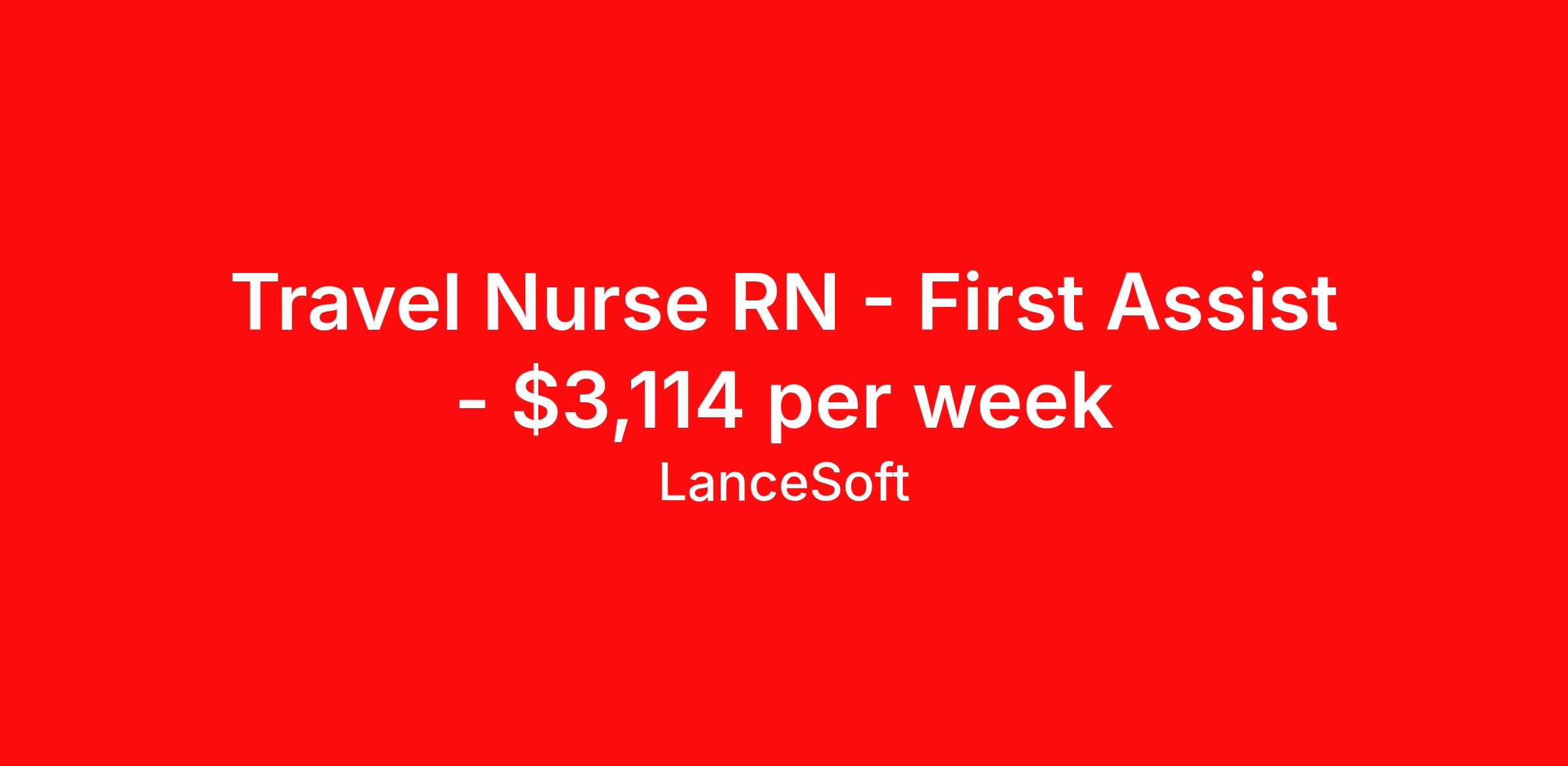 Travel Nurse RN - First Assist - $3,114 per week