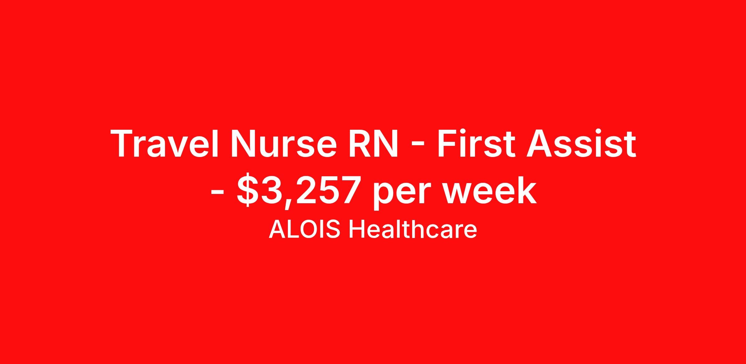 ALOIS Healthcare is seeking a travel nurse RN First Assist for a travel nursing job in New Orleans, Louisiana. Job Description & Requirements Specialty: First Assist Discipline: RN Start Date: 04/06/2026 Duration: 13 weeks 40 hours per week Shift: 8 hours, days Employment Type: Travel RNFAs work in surgical care during the preoperative, intraoperative, and postoperative stages of surgery. They collect patient data, monitor blood loss, protect against contamination, and assess wound healing. ALOIS Healthcare Job ID 17979297. Pay package is based on 8 hour shifts and 40.0 hours per week (subject to confirmation) with tax-free stipend amount to be determined. Posted job title: RN First Assistant (RNFA) About ALOIS Healthcare Why ALOIS Healthcare? ALOIS means “brave warrior” and that’s what you are- Warrior in Scrubs! Just as you advocate for your patients, we will advocate for you. The pay you deserve. The support you need. We’re in your corner for every battle – because you shouldn’t settle for anything less when it comes to your career. We offer: · Industry-leading pay Generous cost of living and housing stipends · Opportunities for referral, sign-on, and extension bonuses · Weekly health insurance or health insurance Marketplace weekly bonus · Continuing education credits We’re proud to be recognized globally as a certified minority-owned staffing supplier. At ALOIS Healthcare: · Everyone Matters · We are Performance Driven · We are Open, Honest and Direct · We are Transparent · We are Inclusive · We Do the Right Thing We care about you - and your success is our success.