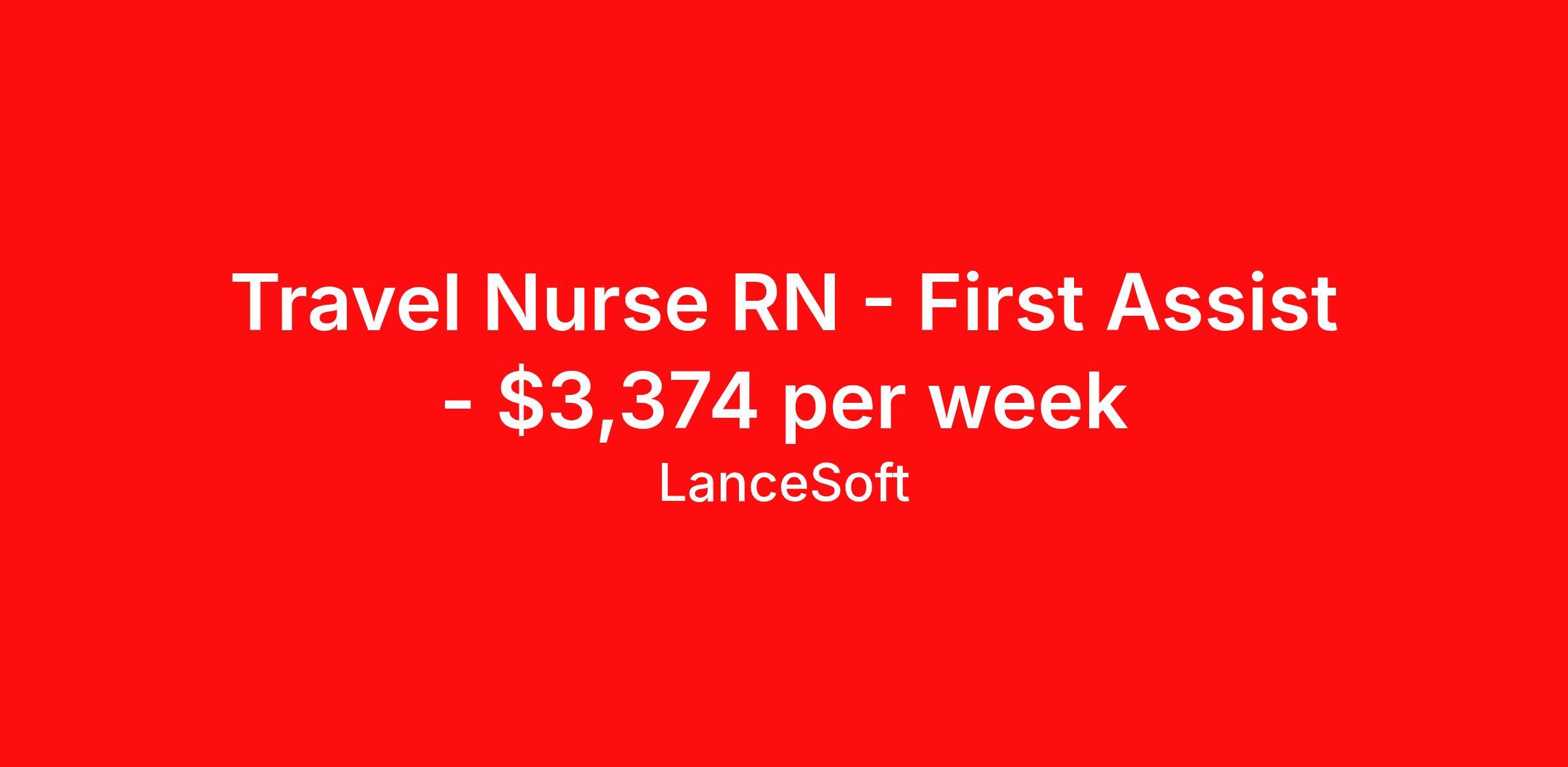 Travel Nurse RN - First Assist - $3,374 per week