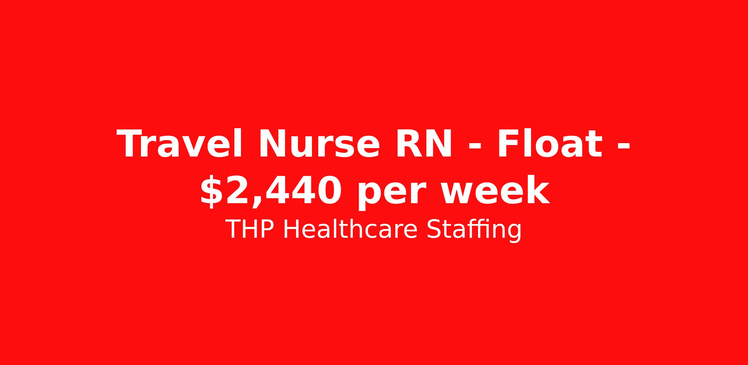 THP Healthcare Staffing is seeking a travel nurse RN Float for a travel nursing job in Lebanon, New Hampshire. Job Description & Requirements Specialty: Float Discipline: RN Start Date: 05/11/2026 Duration: 13 weeks 40 hours per week Shift: 8 hours, days Employment Type: Travel Our Client is currently seeking RN - Float Pool positions in Lebanon, NH for a 5x8 Days shift. You must have current State Licensure and at least 1 year of recent experience. Requirements Current Resume State Licensure Current BLS and/or ACLS and/or Specialty Certifications 2 Current Clinical References Physical (Within 12 Months) TB Skin Test (Within 12 Months) Titers - MMR/Hep B/Varicella Respiratory Fit Test (Within 12 Months) Current - Tdap/Flu Vaccinations Must be able to pass pre-employment, background and urine drug screening Compensation and Benefits Compettive Pay Packages Health Benefit Package Travel pay - 1st pay check Extending Contract Bonus Refer a friend and earn extra cash! At THP Healthcare Staffing, we take care of you - work with us, not for us! THP Healthcare Staffing Job ID 17970146. Pay package is based on 8 hour shifts and 40.0 hours per week (subject to confirmation) with tax-free stipend amount to be determined. Posted job title: RN:Float Pool,07:00:00-15:00:00 About THP Healthcare Staffing At THP Staffing, we specialize in connecting healthcare facilities with highly skilled travel nurses and allied health professionals who bring exceptional care and expertise wherever they go. Our mission is to ensure that every healthcare provider has access to top nursing talent, regardless of location, to deliver superior patient outcomes. Benefits Weekly pay Life insurance Pet insurance License and certification reimbursement Medical benefits Employee assistance programs Referral bonus Vision benefits Holiday Pay Health savings account