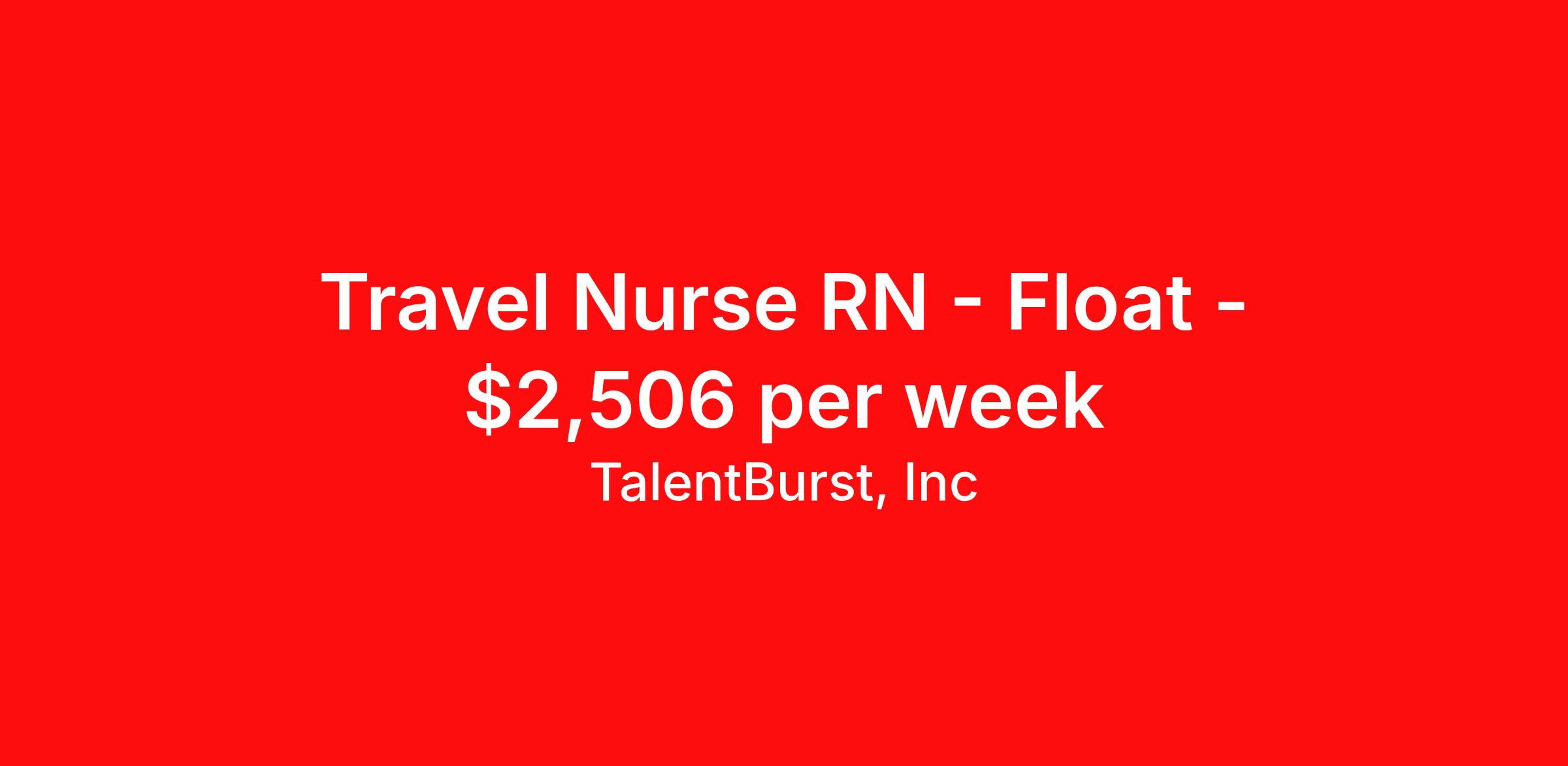 TalentBurst, Inc is seeking a travel nurse RN Float for a travel nursing job in Geneva, New York. Job Description & Requirements Specialty: Float Discipline: RN Start Date: 03/30/2026 Duration: 13 weeks 36 hours per week Shift: 12 hours, days Employment Type: Travel GGH RN Float Pool - FT Days Geneva NY 14456 14 Weeks Short Description: RN Days (7a-730p) EOW/Holiday rotations & 2 OC shifts per 4-weeks. Must be cross trained for multi units (med/surg, ICU, ER), must have BSN & critical care experience. ACLS, BLS, PALS, NIHSS (AHA or RQI specifically). Full Time 3x12 day shift (7a-730p) holidays & every other weekend required. 2 On-Call shifts required per 4-week period. MUST be able to float between Med/Surg, ICU & ED units at both GGH & SSMH locations Complete Description: *MUST BE COMFORTABLE FLOATING TO ICU/ER/MS/MST License: Minimum: Currently licensed by NYS as a registered professional nurse. Certifications: Minimum: BLS, ACLS, PALS required through AHA or the RQI system during clinical orientation, and NIHSS. Basic Coronary Care within 6 months of hire. CPI certification within 90 days of hire. Certifications: Preferred: Certification by the Emergency Nurses Association is recommended within 2 years of hire. TNCC recommended within 2 years of hire Other: Minimum: Demonstrated ability to handle confidential information with discretion and ability to deal with the people in a professional and courteous manner. Ability to meet deadlines, manage multiple priorities and enhance the spirit of teamwork through effective role modeling. Excellent interpersonal, communication and organization skills. Computer literacy Preferred: Experience with Microsoft Office products and electronic medical record Customer Focus: Demonstrates behaviors consistent with the Healing Environment principles of being professional, communicating effectively and attending to the environment. This is evidenced by work behavior which ensures safety, promotes dignity, respect, well being, and exemplifies healthy relationships. The staff member must demonstrate the knowledge and skills necessary to provide care appropriate to the age of the patients served on his or her assigned unit. The individual must demonstrate knowledge of the principles of growth and development of the life span and possess the ability to assess data reflective of the patient's status and interpret the appropriate information needed to identify each patient's requirements relative to his or her age-specific needs, and to provide the care needed by pediatric, adolescent, adult and geriatric patient group. Skills: Skill Required / Desired Amount of Experience Expertise Rating Move NYS RN License, Bachelor of Science in Nursing (BSN) Degree Required BLS, ACLS, PALS (all through American Heart Association specifically), NIHSS Required Minimum 1-year Experience in MedSurg/Tele/Critical Care Units Required 1 Years Questions: Question 1 Have you worked for or any URMC affiliate locations in the past? If yes, which? Question 2 Are you willing and able to float as needed across MedSurg, Emergency Department, ICU units at both Geneva General Hospital and/or Soldiers & Sailors Memorial Hospital as needed? Question 3 Do you reside outside of the 30-mile radius from the facility? TB_RN ZRHC Talent Burst Job ID 26-05765. Pay package is based on 12 hour shifts and 36 hours per week (subject to confirmation) with tax-free stipend amount to be determined. Posted job title: RN Float Pool About TalentBurst, Inc TalentBurst Health & Life Sciences is an established provider of healthcare workforce solutions, servicing healthcare facilities across the United States for over 15 years. As a Joint Commission Certified Agency, our commitment to quality, integrity, and exceptional service has made us a trusted name in the healthcare staffing landscape. Our mission is to bridge the gap between healthcare professionals seeking fulfilling opportunities and healthcare organizations striving to maintain their high standards of care. We are committed to providing top-notch healthcare professionals with access to facilities where they can focus on delivering exceptional patient care and thrive. Whether you're a nurse, allied health professional, or administrative personnel, we have the expertise to match your skills and aspirations with the perfect placement.
