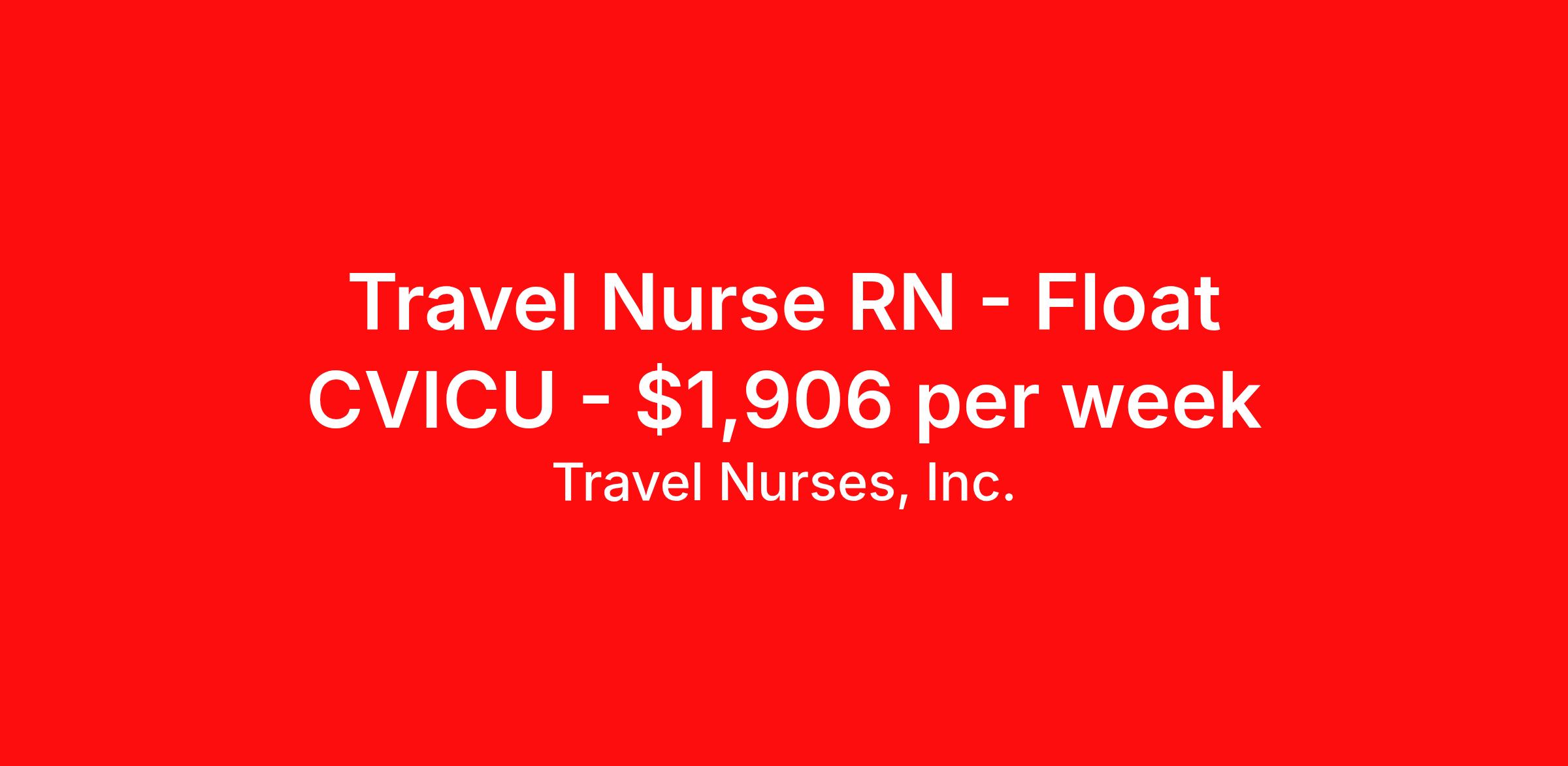 Travel Nurses, Inc. is seeking a travel nurse RN Float CVICU for a travel nursing job in Asheville, North Carolina. Job Description & Requirements Specialty: CVICU Discipline: RN Start Date: 03/30/2026 Duration: 13 weeks 36 hours per week Shift: 12 hours Employment Type: Travel Travel Nurses, Inc. Job ID 306722. Pay package is based on 12 hour shifts and 36 hours per week (subject to confirmation) with tax-free stipend amount to be determined. Posted job title: BACKFILL - TRAVEL - RN - CVICU FLOAT POOL (650) - 6:45PM-7:15AM About Travel Nurses, Inc. Travel Nurses, Inc. is a leading healthcare staffing agency that provides healthcare professionals with opportunities to work across the country. Founded by nurses in 1988, TNI has more than 30 years of experience in the industry. The agency initially focused on staffing operating room settings in the MidSouth. However, this quickly evolved to encompass all nursing specialties and allied health fields nationwide. At the heart of our mission is a profound respect for nurses, whom we consider the cornerstone of healthcare. This acknowledgment extends beyond the nursing profession alone. Travel Nurses, Inc. now proudly embraces a wide array of healthcare professionals, recognizing their crucial roles in our collective mission. Travel Nurses, Inc. is dedicated to providing comprehensive support and opportunities that will help facilitate complete career mobility in the healthcare field. Our commitment to transparency ensures that all professionals, not just nurses, can confidently accept any assignment without financial uncertainties. We prioritize our professionals’ well-being with comprehensive benefits packages, including day-one healthcare coverage, competitive salaries, bonuses and incentives. This underscores our unwavering commitment to offering the best possible rewards and support for all the professionals we serve. Benefits Weekly pay Continuing Education 401k retirement plan Wellness and fitness programs Mileage reimbursement Referral bonus Employee assistance programs Medical benefits Dental benefits Vision benefits Benefits start day 1 License and certification reimbursement Life insurance Retention bonus