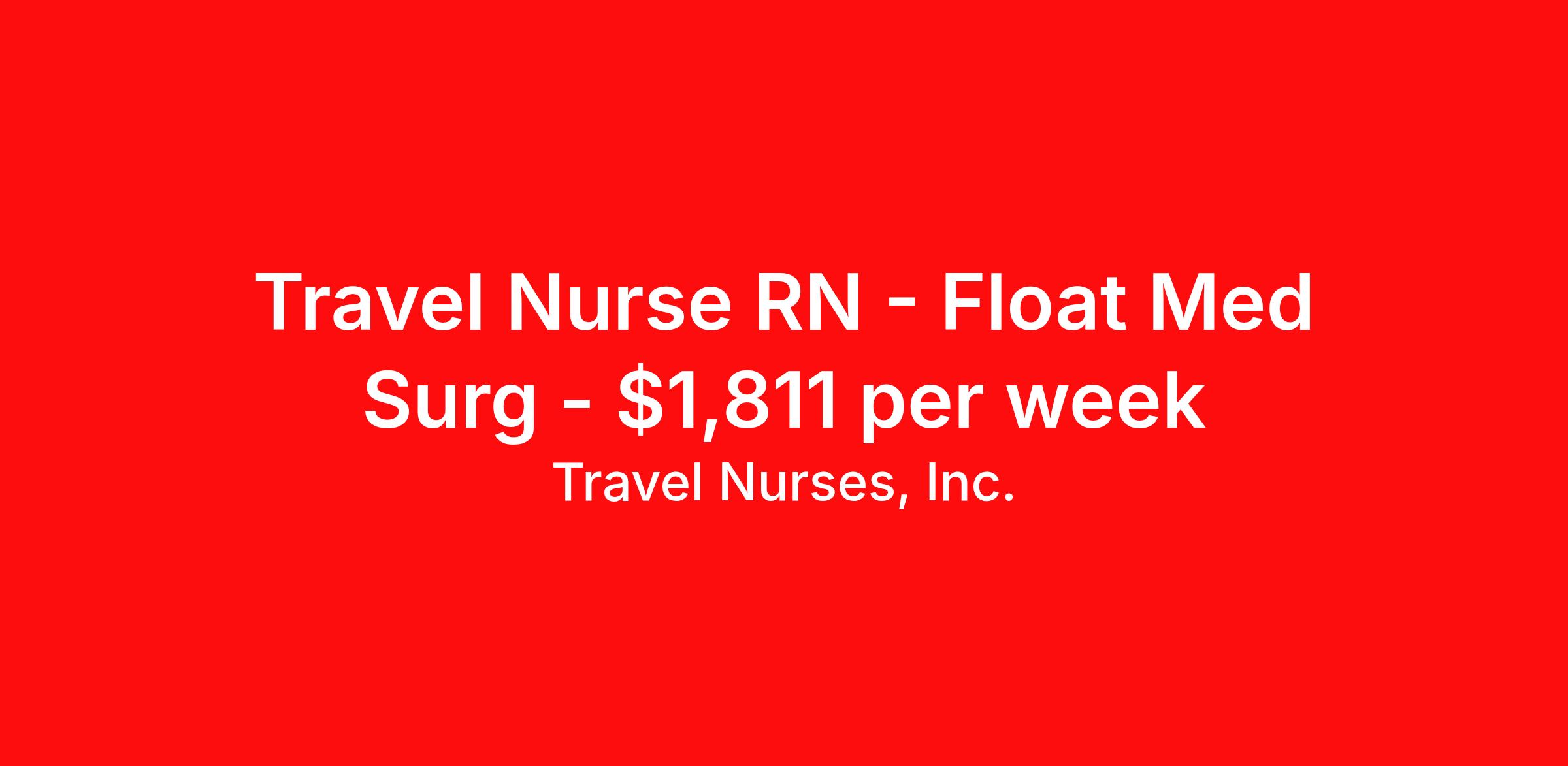 Travel Nurses, Inc. is seeking a travel nurse RN Float Med Surg for a travel nursing job in Anderson, South Carolina. Job Description & Requirements Specialty: Med Surg Discipline: RN Start Date: ASAP Duration: 13 weeks 36 hours per week Shift: 12 hours Employment Type: Travel Travel Nurses, Inc. Job ID 302947. Pay package is based on 12 hour shifts and 36 hours per week (subject to confirmation) with tax-free stipend amount to be determined. Posted job title: Medical Surgical Float Registered Nurse About Travel Nurses, Inc. Travel Nurses, Inc. is a leading healthcare staffing agency that provides healthcare professionals with opportunities to work across the country. Founded by nurses in 1988, TNI has more than 30 years of experience in the industry. The agency initially focused on staffing operating room settings in the MidSouth. However, this quickly evolved to encompass all nursing specialties and allied health fields nationwide. At the heart of our mission is a profound respect for nurses, whom we consider the cornerstone of healthcare. This acknowledgment extends beyond the nursing profession alone. Travel Nurses, Inc. now proudly embraces a wide array of healthcare professionals, recognizing their crucial roles in our collective mission. Travel Nurses, Inc. is dedicated to providing comprehensive support and opportunities that will help facilitate complete career mobility in the healthcare field. Our commitment to transparency ensures that all professionals, not just nurses, can confidently accept any assignment without financial uncertainties. We prioritize our professionals’ well-being with comprehensive benefits packages, including day-one healthcare coverage, competitive salaries, bonuses and incentives. This underscores our unwavering commitment to offering the best possible rewards and support for all the professionals we serve. Benefits Weekly pay Continuing Education 401k retirement plan Wellness and fitness programs Mileage reimbursement Referral bonus Employee assistance programs Medical benefits Dental benefits Vision benefits Benefits start day 1 License and certification reimbursement Life insurance Retention bonus