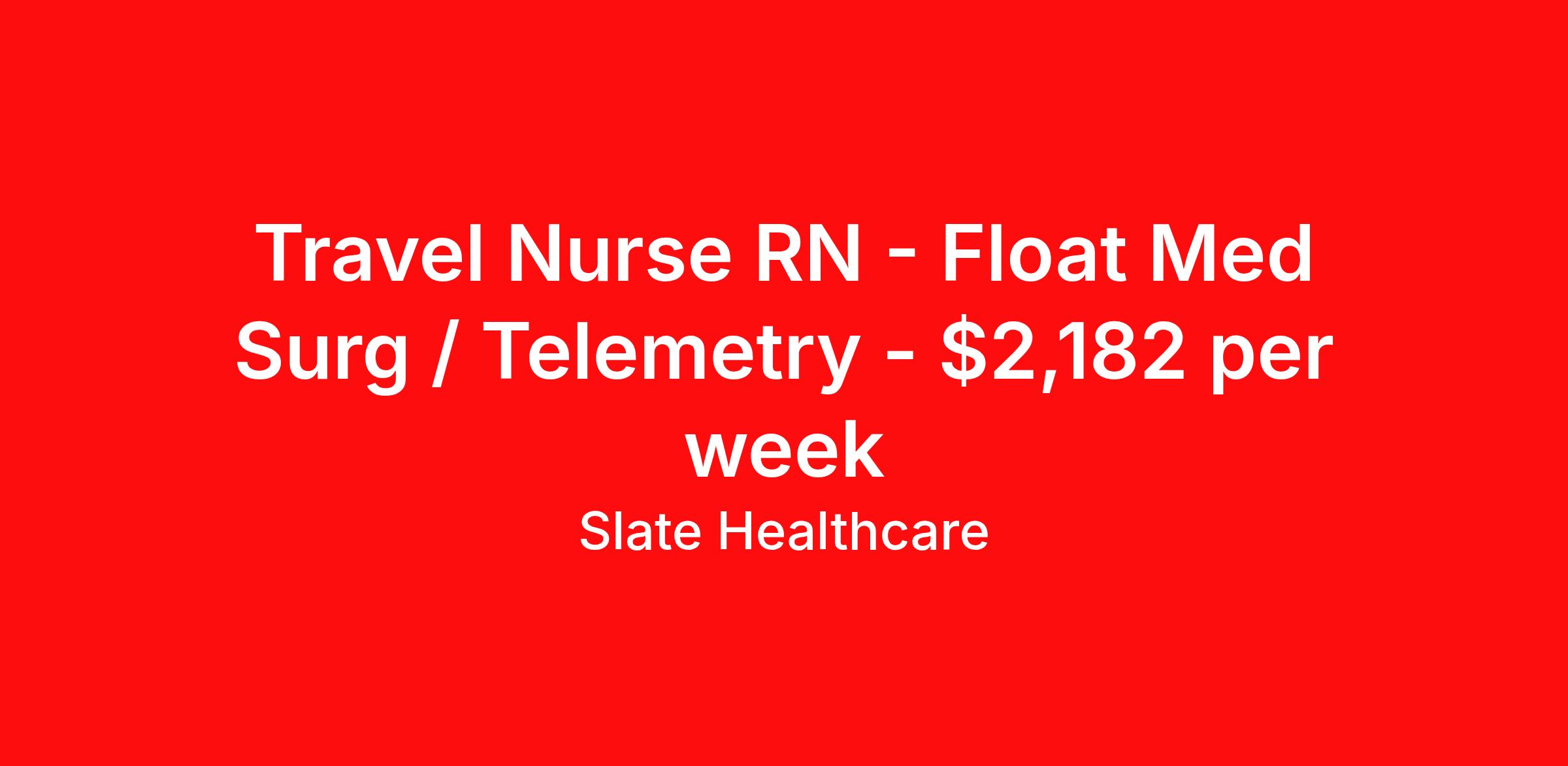 Slate Healthcare is seeking a travel nurse RN Float Med Surg / Telemetry for a travel nursing job in Honolulu, Hawaii. Job Description & Requirements Specialty: Med Surg / Telemetry Discipline: RN Start Date: 03/30/2026 Duration: 13 weeks 36 hours per week Shift: 12 hours, rotating Employment Type: Travel Profession:RN, JobSpecialty:Med Surg PCU Tele, Shift:3x12 Rotating, Duration:13 weeks Slate Healthcare Job ID 6ef33bbb-935a-48b5-b6b2-6fdfbea64f1c. Pay package is based on 12 hour shifts and 36 hours per week (subject to confirmation) with tax-free stipend amount to be determined. About Slate Healthcare Slate Healthcare is a premier travel healthcare staffing agency, connecting healthcare professionals with thousands of opportunities at top-tier hospitals and facilities across the country. We’re committed to supporting nurses and allied health professionals in building stable, fulfilling careers—while embracing the freedom and excitement that comes with travel. Our goal is simple: to offer flexibility, competitive pay, and personalized placements that align with each clinician’s lifestyle and career goals. At Slate, we empower our professionals to choose when and where they work, while ensuring they receive the highest compensation possible—because we believe that exceptional care starts with empowered caregivers.