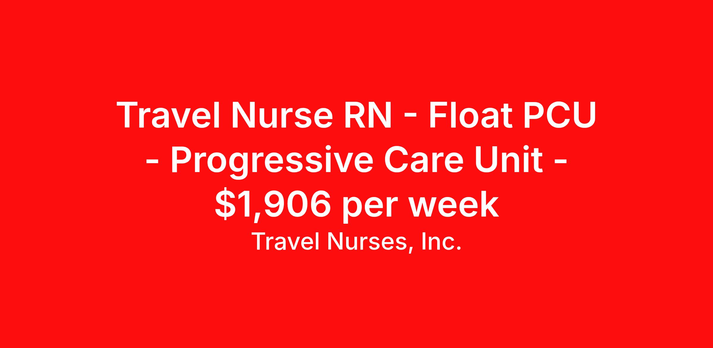 Travel Nurses, Inc. is seeking a travel nurse RN Float PCU - Progressive Care Unit for a travel nursing job in Asheville, North Carolina. Job Description & Requirements Specialty: PCU - Progressive Care Unit Discipline: RN Start Date: 03/30/2026 Duration: 13 weeks 36 hours per week Shift: 12 hours Employment Type: Travel Travel Nurses, Inc. Job ID 306719. Pay package is based on 12 hour shifts and 36 hours per week (subject to confirmation) with tax-free stipend amount to be determined. Posted job title: BACKFILL - RN - STEPDOWN STAFFING POOL (602) 6:45PM - 7:15AM About Travel Nurses, Inc. Travel Nurses, Inc. is a leading healthcare staffing agency that provides healthcare professionals with opportunities to work across the country. Founded by nurses in 1988, TNI has more than 30 years of experience in the industry. The agency initially focused on staffing operating room settings in the MidSouth. However, this quickly evolved to encompass all nursing specialties and allied health fields nationwide. At the heart of our mission is a profound respect for nurses, whom we consider the cornerstone of healthcare. This acknowledgment extends beyond the nursing profession alone. Travel Nurses, Inc. now proudly embraces a wide array of healthcare professionals, recognizing their crucial roles in our collective mission. Travel Nurses, Inc. is dedicated to providing comprehensive support and opportunities that will help facilitate complete career mobility in the healthcare field. Our commitment to transparency ensures that all professionals, not just nurses, can confidently accept any assignment without financial uncertainties. We prioritize our professionals’ well-being with comprehensive benefits packages, including day-one healthcare coverage, competitive salaries, bonuses and incentives. This underscores our unwavering commitment to offering the best possible rewards and support for all the professionals we serve. Benefits Weekly pay Continuing Education 401k retirement plan Wellness and fitness programs Mileage reimbursement Referral bonus Employee assistance programs Medical benefits Dental benefits Vision benefits Benefits start day 1 License and certification reimbursement Life insurance Retention bonus