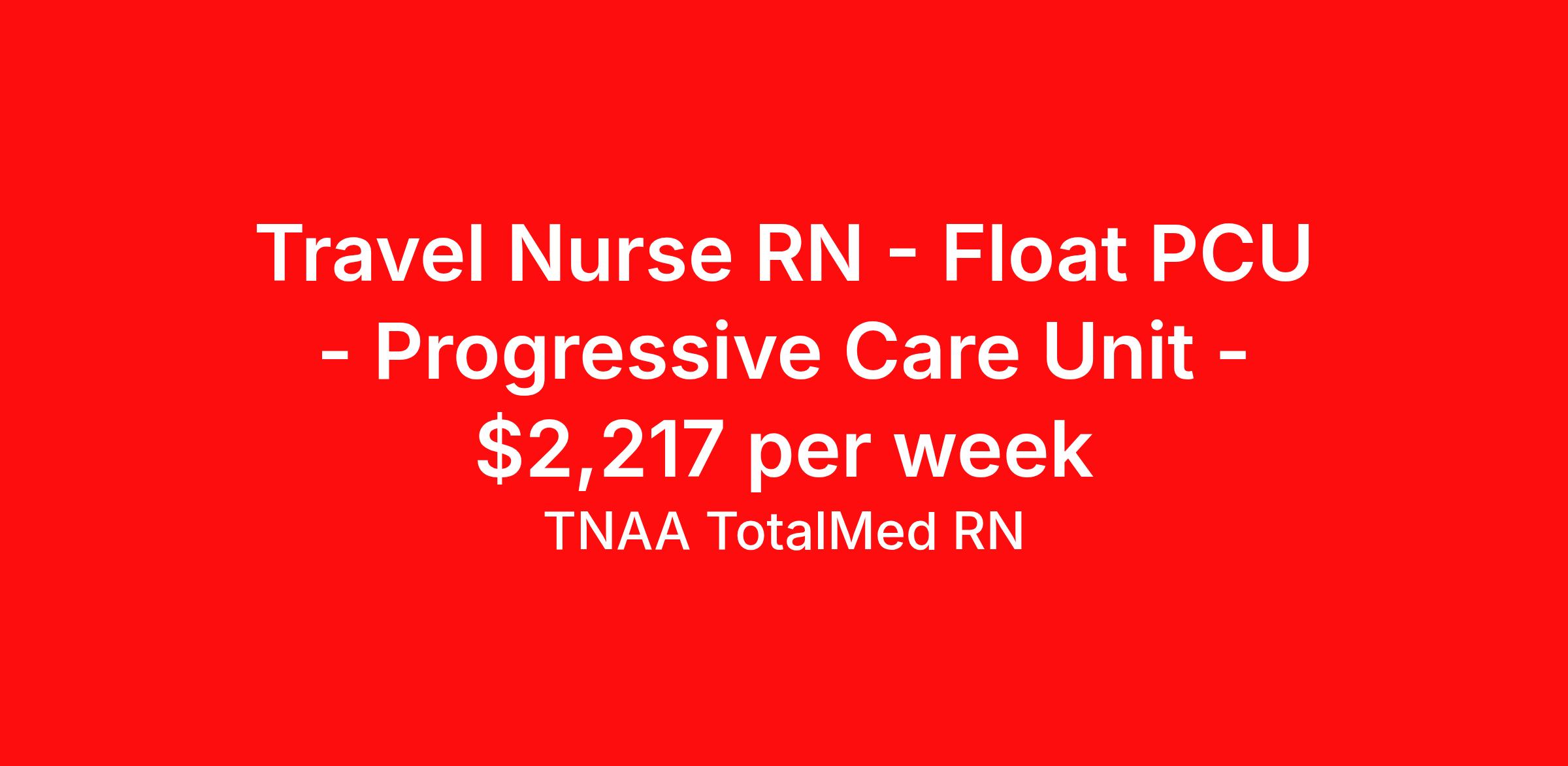 Travel Nurse RN - Float PCU - Progressive Care Unit - $2,217 per week