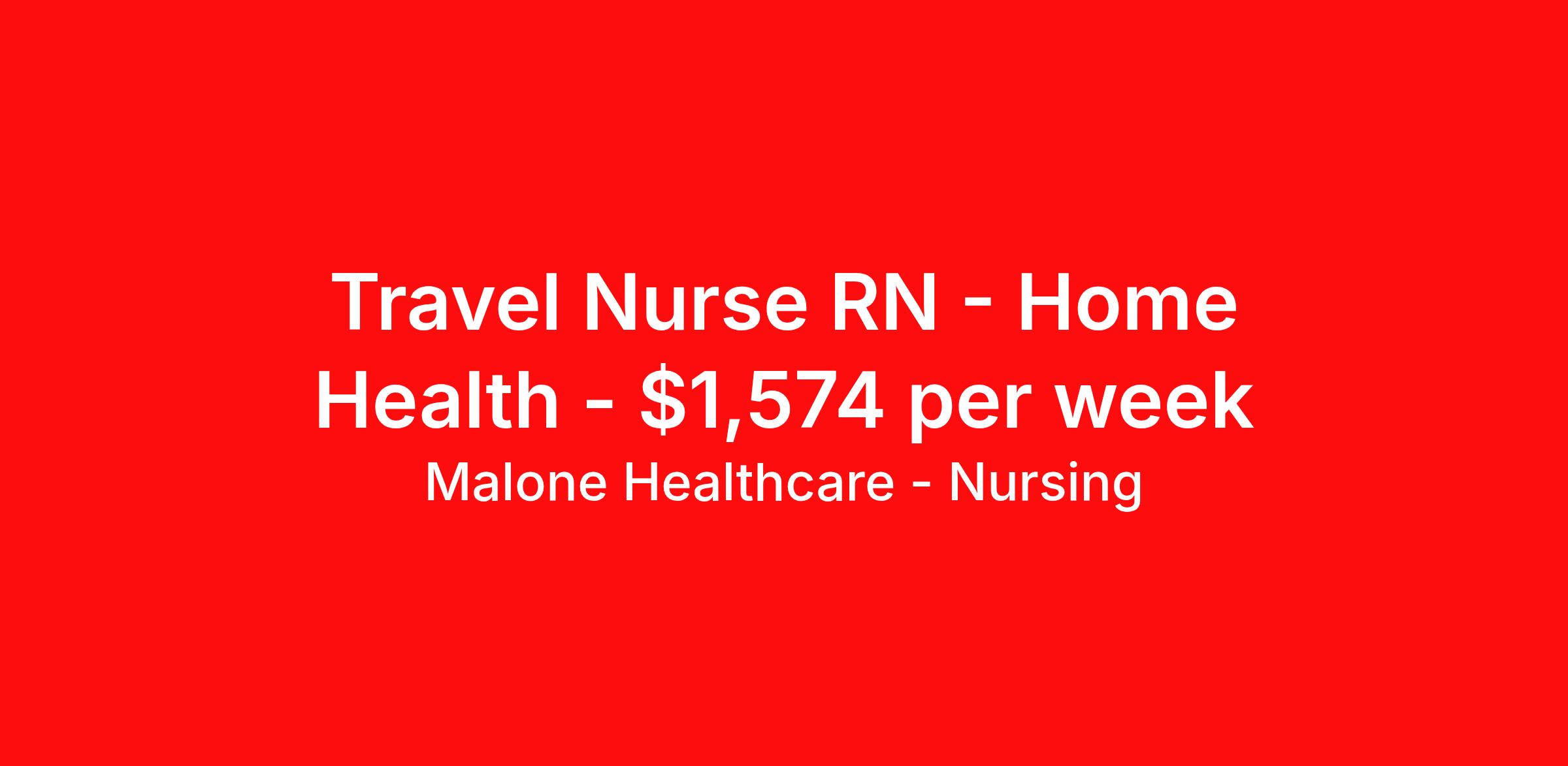 Malone Healthcare - Nursing is seeking a travel nurse RN Home Health for a travel nursing job in Urbandale, Iowa. Job Description & Requirements Specialty: Home Health Discipline: RN Start Date: 04/27/2026 Duration: 9 weeks 40 hours per week Shift: 8 hours, days Employment Type: Travel Must have 2 years of home health experience in order to qualify for this position About Malone Healthcare - Nursing With a commitment to providing a higher standard of service and experience in patient care, Malone Healthcare places expert nurses and allied health professionals in rewarding careers throughout the United States. As a leading healthcare staffing agency, Malone’s focus on compliance and integrity translates to a seamless experience for our team members and partner facilities. When you work with Malone Healthcare, you can rely on over 50 years of proven experience placing exceptional professionals in quality healthcare settings. Benefits Weekly pay Holiday Pay Guaranteed Hours Continuing Education 401k retirement plan Pet insurance Referral bonus Medical benefits Dental benefits Vision benefits License and certification reimbursement Life insurance