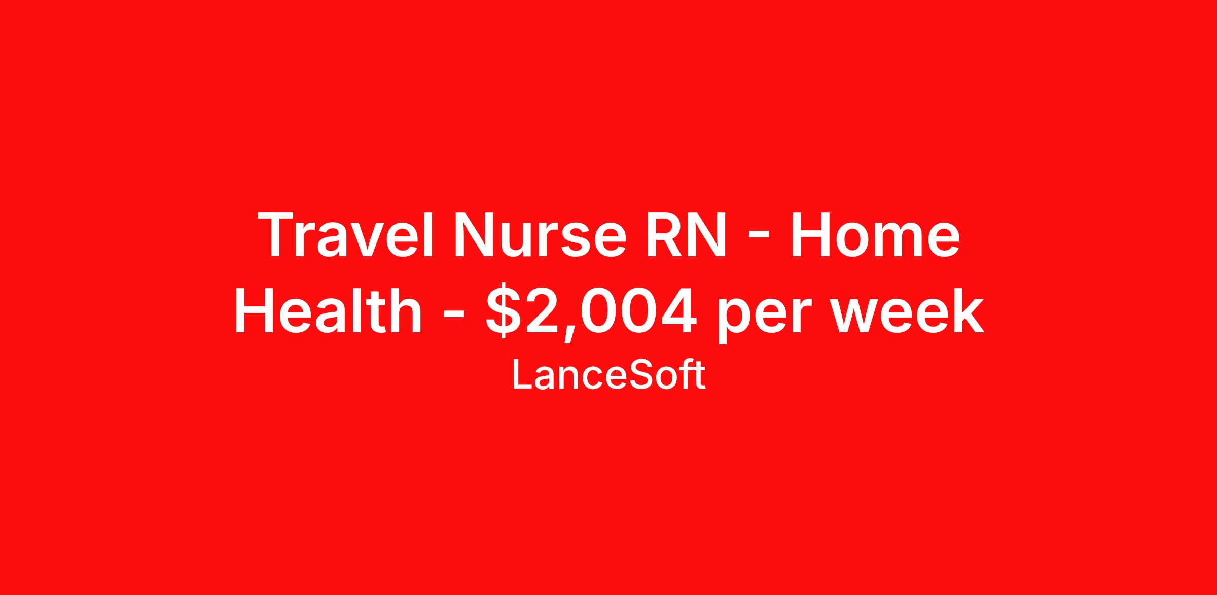 LanceSoft is seeking a travel nurse RN Home Health for a travel nursing job in Torrance, California. Job Description & Requirements Specialty: Home Health Discipline: RN Start Date: 04/13/2026 Duration: 13 weeks 40 hours per week Shift: 8 hours, days Employment Type: Travel JOB REQUIREMENTS: - Experience: 2 years of HH exp with high volume case loads, no exceptions - First time travelers accepted: NO, Previous HH travel exp required. - Certs: BLS - FLU VACCINE (no exemptions) - Special Requirements: RECENT OASIS EXP REQUIRED - You will be required to take an OASIS EXAM to be eligible for an interview. PRIOR to exam, please review the Oasis E11 through google search. Mobility (G-Section, GG Section and M18) will be covered JOB DETAILS: - Weekend REQ: YES, every 4 weeks - Territory/County covering: LA County - Territory mileage radius? 5-20 miles - Mileage reimbursed? Mileage reimbursement per IRS standard - On-Call REQ: YES - Pending license: NO, must be active at time of submission - Locals accepted: YES, no radius rule. JOB DUTIES/ADDITIONAL UNIT INFO/CASELOAD: 5-6 pts per day. Our home health department is not a per visit model. It is an hourly pay model. This requires all traveler to start on time at 0800 as stated in their contract HCCR(NJ) About LanceSoft Established in 2000, LanceSoft is a Certified MBE and Woman-Owned organization. Lancesoft Inc. is one of the highest rated companies in the industry. We have been recognized as one of the Largest Staffing firms and ranked in the top 50 fastest Growing Healthcare Staffing firms in 2022. Lancesoft offers short- and long-term contracts, permanent placements, and travel opportunities to credentialed and experienced professionals throughout the United States. We pride ourselves on having industry leading benefits. We understand the importance of partnering with an expert who values your needs, which is why we’re 100% committed to finding you an assignment that best matches your career and lifestyle goals. Our team of experienced career specialists takes the time to understand your needs and match you with the right job Lancesoft has been chosen by Staffing Industry Analysts as one of the Best Staffing Firms to Work for.LanceSoft specializes in providing Registered Nurses, Nurse Practitioners, LPNs/LVNs, Social Workers, Medical Assistants, and Certified Nursing Assistants to work in Acute Care Centers, Skilled Nursing Facilities, Long-Term Care centers, Rehab Facilities, Behavioral Health Centers, Drug & Alcohol Facilities, Home Health & Community Health, Urgent Care Clinics, and many other provider-based facilities. Benefits Weekly pay Medical benefits