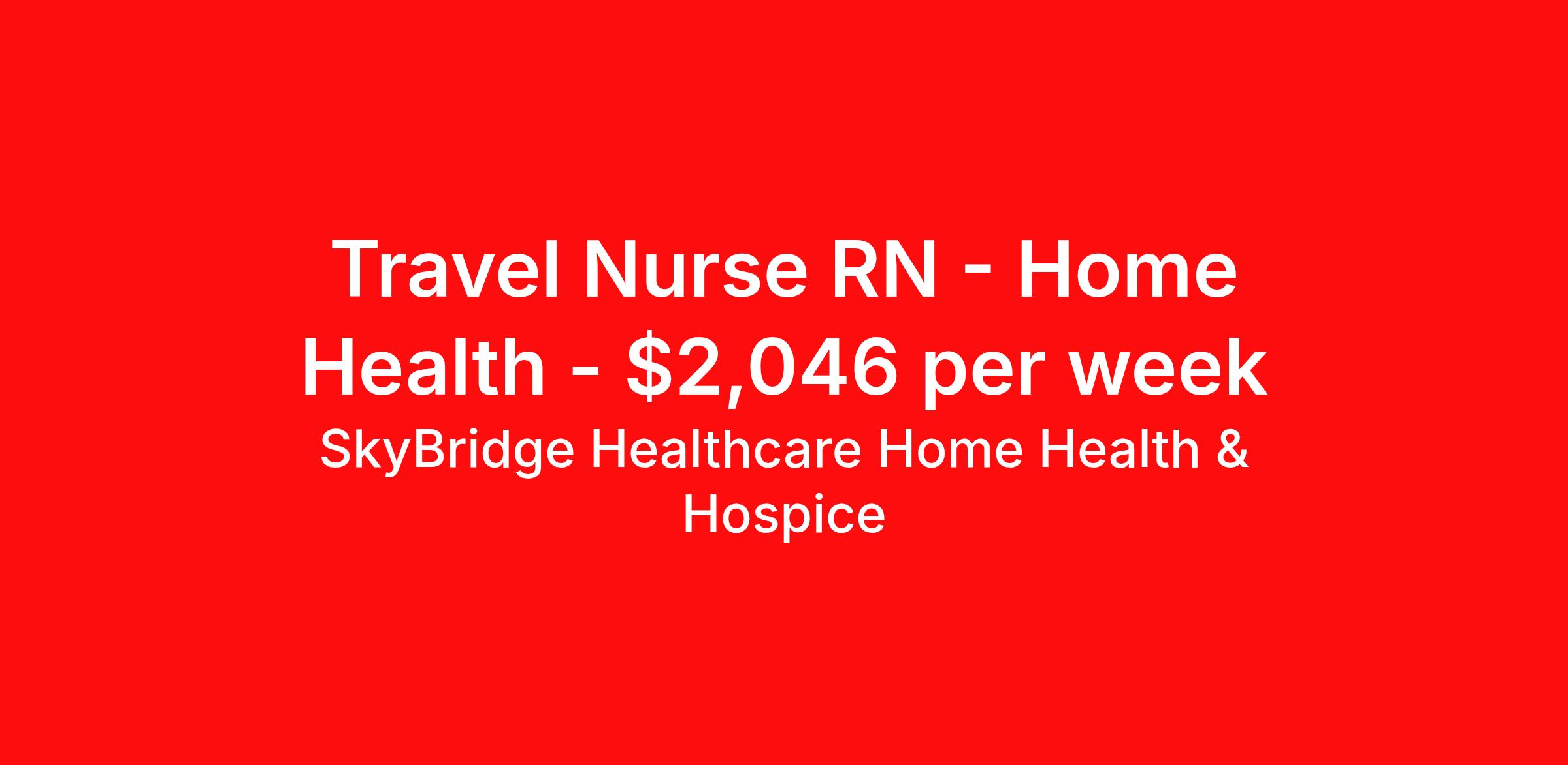 SkyBridge Healthcare Home Health & Hospice is seeking a travel nurse RN Home Health for a travel nursing job in Leominster, Massachusetts. Job Description & Requirements Specialty: Home Health Discipline: RN Duration: 13 weeks 40 hours per week Shift: 8 hours, days Employment Type: Travel SkyBridge Healthcare Home Health & Hospice Job ID 400HH27254. Pay package is based on 8 hour shifts and 40 hours per week (subject to confirmation) with tax-free stipend amount to be determined. About SkyBridge Healthcare Home Health & Hospice It is our mission at SkyBridge Healthcare to connect professionals within the healthcare community through both genuine relationships and quality work. We understand the demands of healthcare positions which is why we want to give back to Healthcare Professionals who give so much to their communities. We’re partnered with some of the greatest facilities in the nation, therefore we ensure our Healthcare Professionals will receive top-notch treatment every step of the way. Our specialties include Nursing, Allied Health, Laboratory, Therapy, Healthcare Information Technology, and Revenue Cycle. Follow us on social media to stay in the know of our latest company updates and job postings. Benefits Weekly pay 401k retirement plan License and certification reimbursement Life insurance Medical benefits Dental benefits Vision benefits Mileage reimbursement Employee assistance programs Holiday Pay Guaranteed Hours