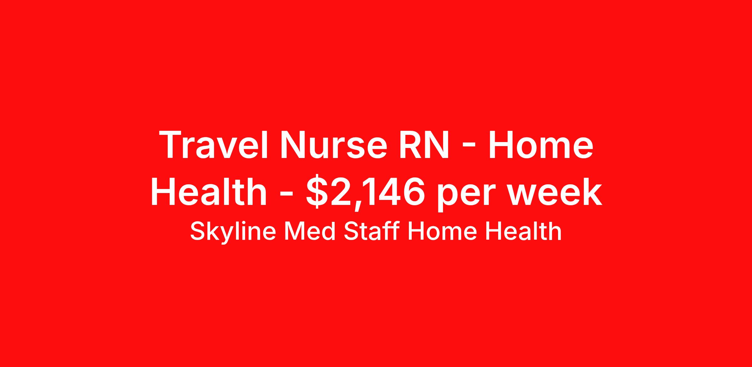 Skyline Med Staff Home Health is seeking a travel nurse RN Home Health for a travel nursing job in Wiggins, Mississippi. Job Description & Requirements Specialty: Home Health Discipline: RN Start Date: ASAP Duration: 13 weeks 40 hours per week Shift: 8 hours, days Employment Type: Travel Weekly amount stated in the job postings is estimated based on estimated hourly wages and potential stipends available for the location of the assignment. Pay package is calculated on bill rate at the time job was posted, but can change or vary without notice. Exact pay packages might vary as this is an estimate. Our recruiter would be happy to build an exact pay package for you for each job. Skyline Med Staff Home Health Job ID 36170715. Pay package is based on 8 hour shifts and 40.0 hours per week (subject to confirmation) with tax-free stipend amount to be determined. Posted job title: RN:Home Health,07:00:00-15:00:00 About Skyline Med Staff Home Health Join the Top- Rated Travel Healthcare Team! Skyline Med Staff was named as the 1 Best Travel Healthcare Company in 2025 by BluePipes, a recognition driven by glowing reviews from travel healthcare professionals. Our recruiters are consistently praised on Google for their responsiveness, dedication, accessibility, and industry knowledge. Ready to experience the difference? Apply for a job today and see why healthcare professionals choose Skyline! Certified Women Owned Business We believe that travel is good for the soul. We want to be on your journey with you and find the right job that fits you Skyline Med Staff is committed to one vision treating others the way that THEY want to be treated. The executive team at Skyline Med Staff focuses on a commitment to quality, consistency, and the highest level of service. Our team members continually strive to build long term relationships that center on you and helping you achieve your goals. Some of the Benefits you will receive with Skyline Med Staff: Over 30 years of combined experience in the staffing industry Higher Take-Home Pay Rates Dedicated Personal Recruiter We are available to you 24/7 Health Insurance Plan Options Tax Free Per Diems, Housing Stipends and Travel Reimbursements Joint Commission Certified Contracts in all 50 states Referral and Loyalty Bonuses Benefits Medical benefits Referral bonus