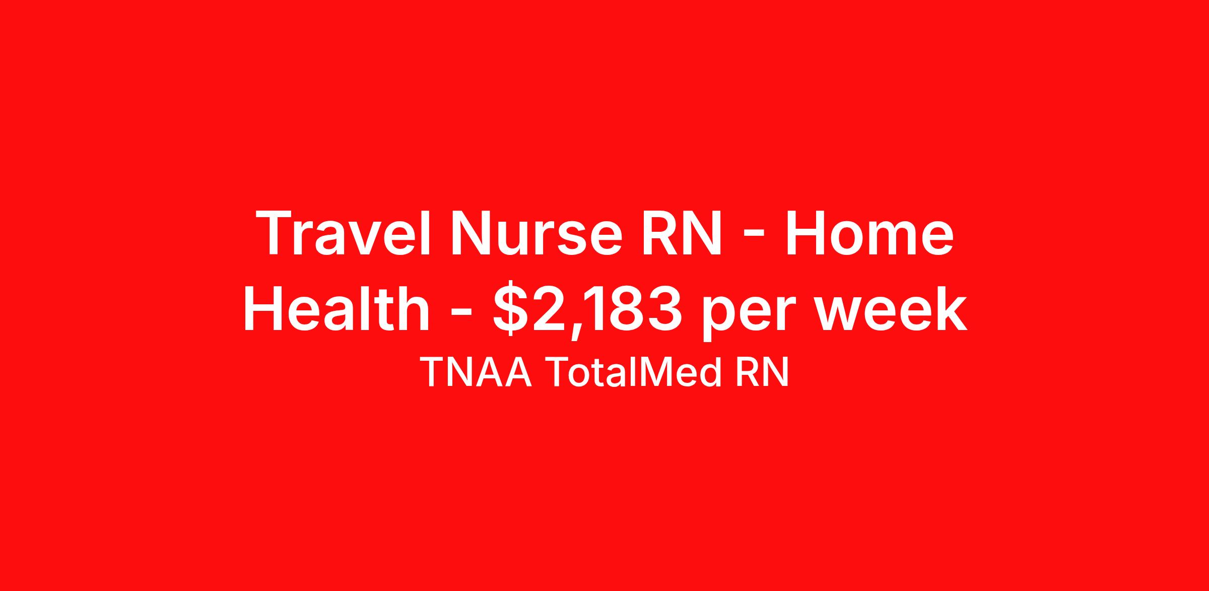 TNAA TotalMed RN is seeking a travel nurse RN Home Health for a travel nursing job in Durham, North Carolina. Job Description & Requirements Specialty: Home Health Discipline: RN Duration: 13 weeks 40 hours per week Shift: 8 hours, days Employment Type: Travel We're looking for Home Health RNs for an immediate travel opening in Durham, NC. The right RN should have 1 year of experience in Home Health nursing. Read below for more requirements. As an RN in Home Health, you will provide skilled nursing care to patients in their homes, supporting recovery, chronic disease management, and overall wellness. You'll work independently and collaboratively with the healthcare team to promote patient-centered care and improve health outcomes. As an RN, you should be prepared to perform the following tasks: Perform comprehensive patient assessments and develop individualized care plans Administer medications, treatments, and wound care as prescribed Monitor patient progress and adjust care plans accordingly Educate patients and families on disease management, medication use, and health maintenance Coordinate care with physicians, therapists, and other healthcare providers Provide skilled nursing interventions such as IV therapy, catheter care, and respiratory support Document nursing care, patient responses, and progress accurately and timely Identify and report any changes in patient condition promptly Ensure compliance with infection control, safety, and regulatory standards Manage time efficiently to meet patient visit schedules and maintain reliable communication The ideal candidate must have at least one year of experience as an RN in a Home Health setting. Additionally, they should possess a current BLS certification and be eligible for State licensure. Additional certifications may be required. RNs in home health should be autonomous, organized, and compassionate, able to provide high-quality care in a patient's home environment. Requirements*: BLS, 2 Years * Additional certifications may be required before beginning an assignment. TotalMed Travel Job ID 1377808. Pay package is based on 8 hour shifts and 40 hours per week (subject to confirmation) with tax-free stipend amount to be determined. Posted job title: Home Health - Home Health RN - Travel Nurse About TNAA TotalMed RN TotalMed is a Top Ten, travel nursing and healthcare staffing agency with the mission of igniting purpose in healthcare. The organization staffs nurses, therapists, pharmacists, and other clinicians of all specialties in all 50 states. They offer local and travel jobs and match caregivers with the right organization to assist both facilities and patients. As an organization, they focus on putting highly-skilled staff into facilities to ensure adequate staffing for a better patient experience. TotalMed specializes in recruiting and placing healthcare professionals in travel, PRN, and permanent positions across the country in Nursing and Allied Health. Throughout 2020, the organization filled roles at even the most short-staffed facilities during the most challenging time in healthcare. By matching the right travel healthcare professional with the right organization, TotalMed continues to offer a lifeline to facilities and their patients. Benefits Weekly pay Guaranteed Hours Continuing Education 401k retirement plan Sick pay Wellness and fitness programs Referral bonus Employee assistance programs Medical benefits Dental benefits Vision benefits Benefits start day 1