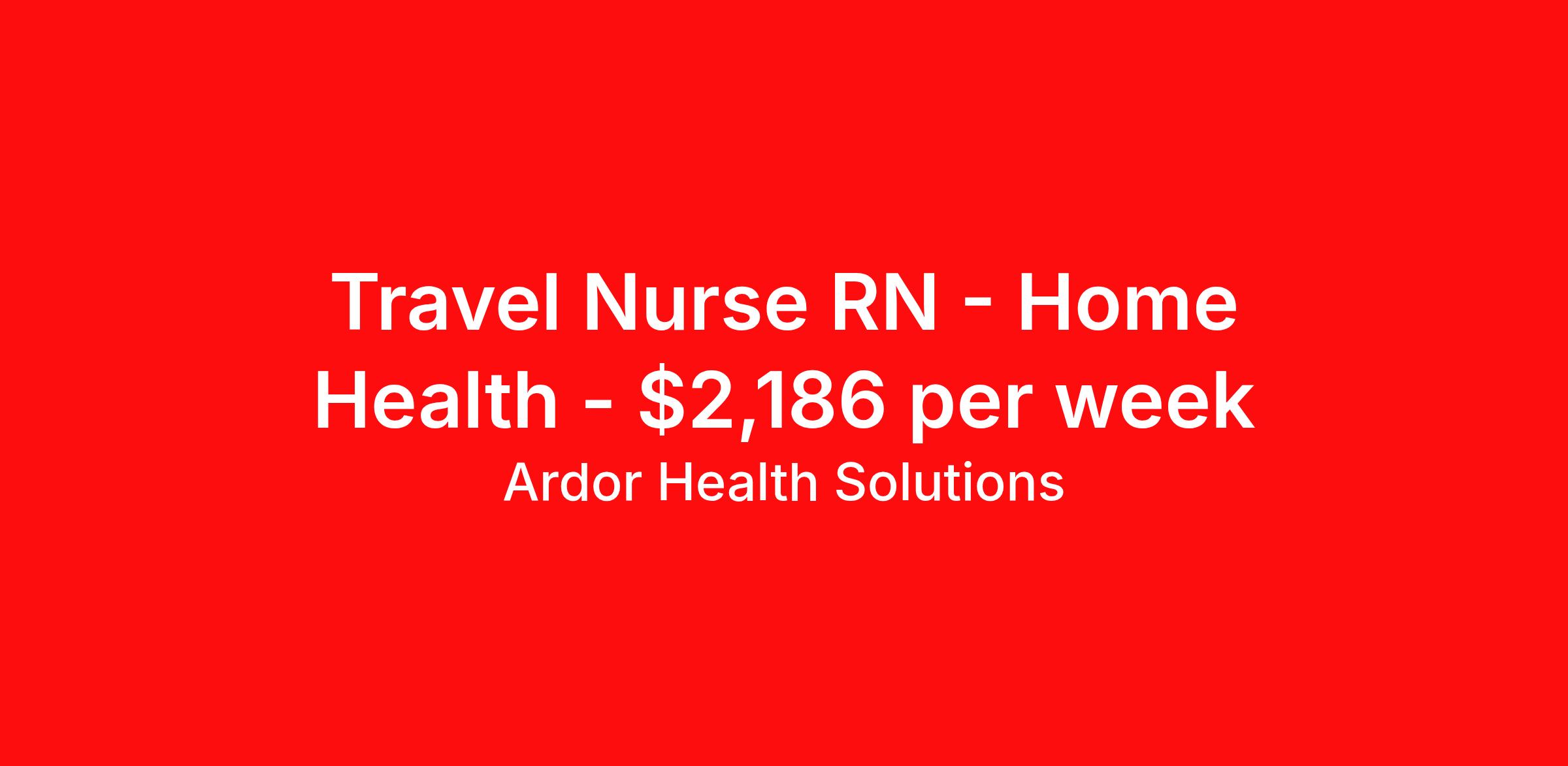 Ardor Health Solutions is seeking a travel nurse RN Home Health for a travel nursing job in Norcross, Georgia. Job Description & Requirements Specialty: Home Health Discipline: RN Start Date: 03/23/2026 Duration: 13 weeks 40 hours per week Shift: 8 hours, days Employment Type: Travel VERIFIED PAY PACKAGE 1 year of Home Health experience required. BLS through AHA EMR- Homecare Homebase and Oasis experience required. Access to 24/7 telephone support during your contract assignment! Ardor Health is Joint Commissioned Certified. Cohesive working environment. Get paid weekly doing what you love! When you travel with Ardor Health, you'll work with Quality Assurance Specialists who will assist you in acquiring all necessary credentials. COVID-19 vaccination and testing requirements vary by facility. Ardor Health adheres to the guidelines and requirements of each facility, as well as all applicable federal, state, and local laws. Ardor Health Job ID JPC -540939. Pay package is based on 8 hour shifts and 40 hours per week. Weekly gross of $2,186 with guaranteed tax free stipends of $1,246 per week. Locals accepted at a lower rate. Do you have experience using Homecare Homebase & OASIS? About Ardor Health Solutions Ardor Health Solutions formed in 2001 and remains a privately held medical staffing business owned and operated by the same family. Over the years we have expanded our staffing and recruiting capabilities to include therapy services, nursing services, and all allied services. If you would like the personal service that comes with a staff of recruiters that have an average tenure with the company between 5 and 15 years, and the knowledge of our client services representatives with similar experience, there is no need to look any further. At Ardor Health Solutions you can expect better than average pay packages, extraordinary benefits, and the peace of mind that you will not be forgotten once you start your assignment. Perhaps that is why so many of our caregivers have completed more than a dozen different assignments with us over our long history. Ardor Health is pleased to offer a free medical insurance plan in addition to major medical plans. Please contact a recruiter for more details on the free medical plan and/or any other general inquiries. One final fact about Ardor Health Solutions. We have been paying our caregivers weekly since 2001, and we have never, ever, missed a payroll. If you are currently on an assignment with us, thank you. If you have traveled with us before, we would like to welcome you back. If you have never traveled with us, give us a try. You will not be disappointed. Benefits Weekly pay Holiday Pay Pet insurance Referral bonus Employee assistance programs Medical benefits Dental benefits Vision benefits Benefits start day 1 License and certification reimbursement Life insurance Discount program