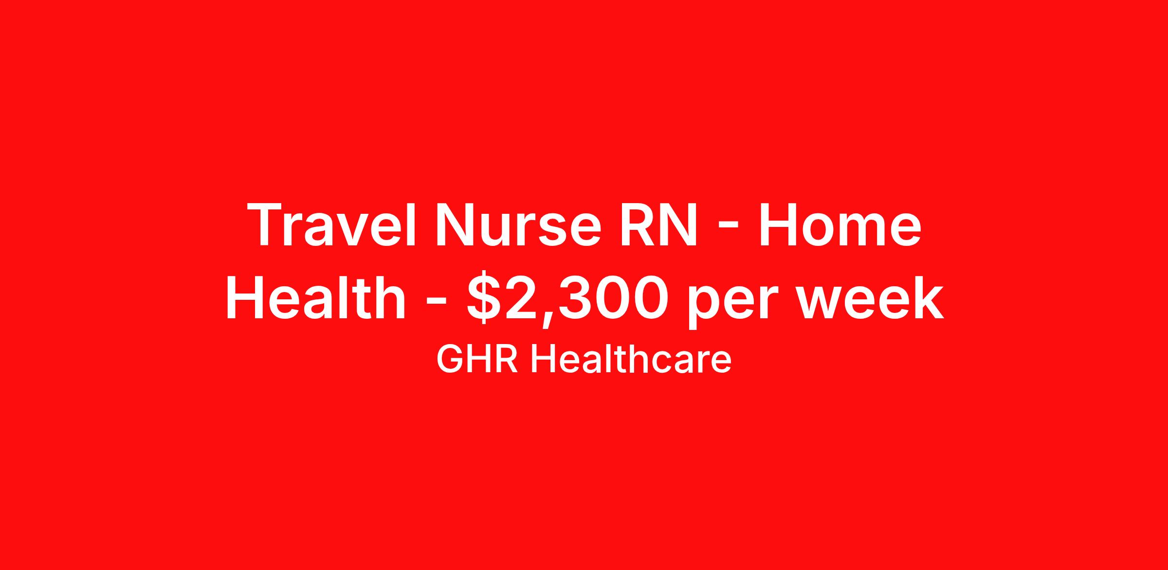 GHR Healthcare is seeking a travel nurse RN Home Health for a travel nursing job in Princeton, New Jersey. Job Description & Requirements Specialty: Home Health Discipline: RN Start Date: 04/13/2026 Duration: 13 weeks 40 hours per week Shift: 8 hours, days Employment Type: Travel Travel Home Health RN – Princeton, NJ | $2,200/week Shift: Days | 13-Week Contract ✨ Flexible schedule great pay! Seeking an experienced Home Health RN for a travel assignment in Princeton, NJ. Ideal for nurses who enjoy independent patient care and autonomy in a home setting. What You’ll Do: Provide skilled nursing care in patients’ homes Perform assessments, wound care, med administration, and patient education Manage a daily caseload and complete OASIS documentation Coordinate care with physicians and interdisciplinary teams Requirements: Active RN license (NJ or compact) BLS certification 2 years Home Health experience OASIS & EMR experience required Valid driver’s license & reliable transportation ⚡ High-demand role – quick interviews & offers! Apply today! About GHR Healthcare For over 30 years, GHR Healthcare has been the bridge between healthcare professionals and the facilities that need them nationwide. We're committed to uncovering your ideal fit, supported by GHR's dedication to competitive compensation, transparent communication, and a devoted team that genuinely cares about your career journey. You can trust us to stand by your side as your advocate, confidante, and partner in advancing your career. At GHR, care and consideration are at the heart of everything we do. Visit ghrhealthcare.com to learn more.