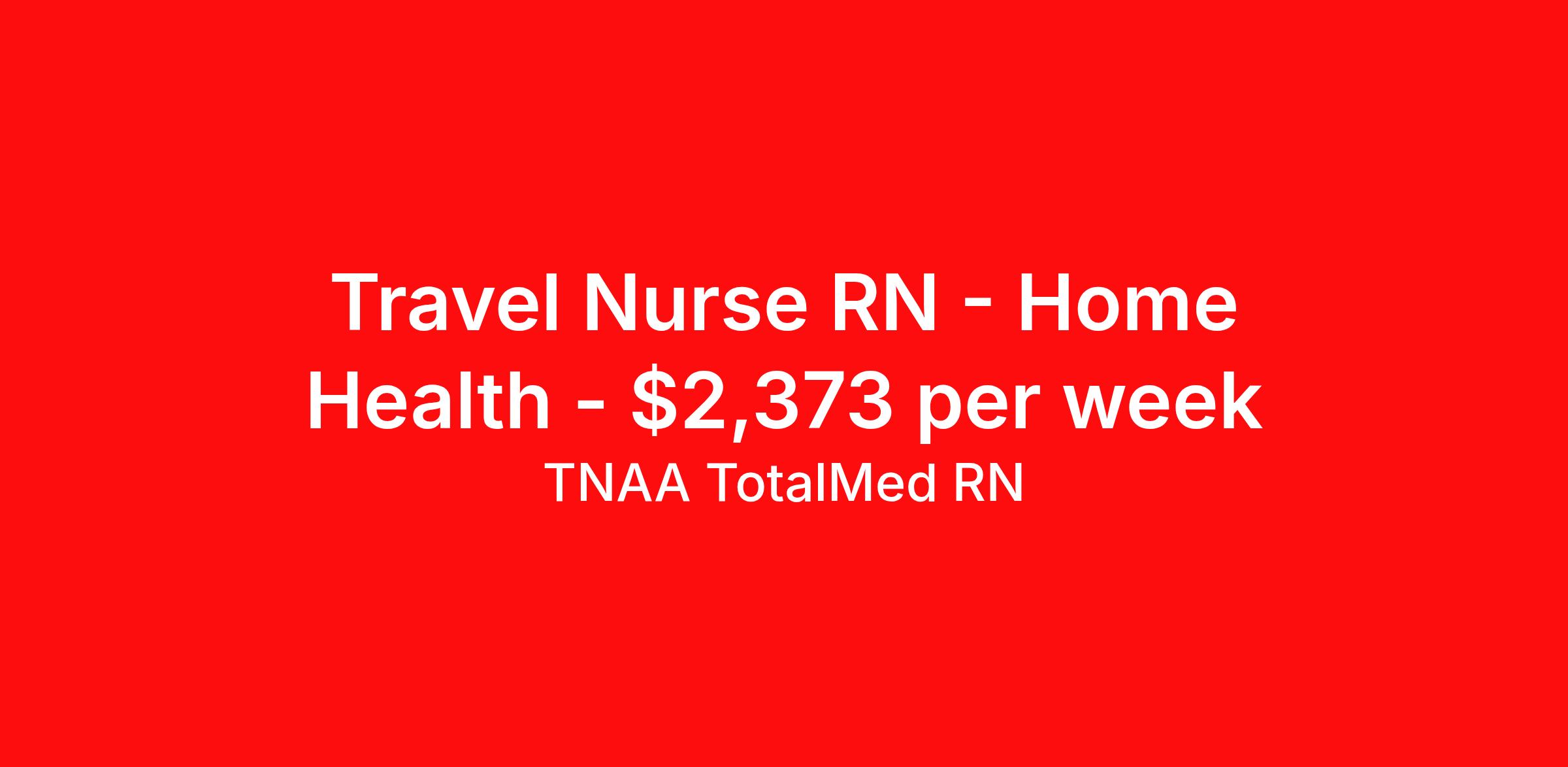 Travel Nurse RN - Home Health - $2,373 per week