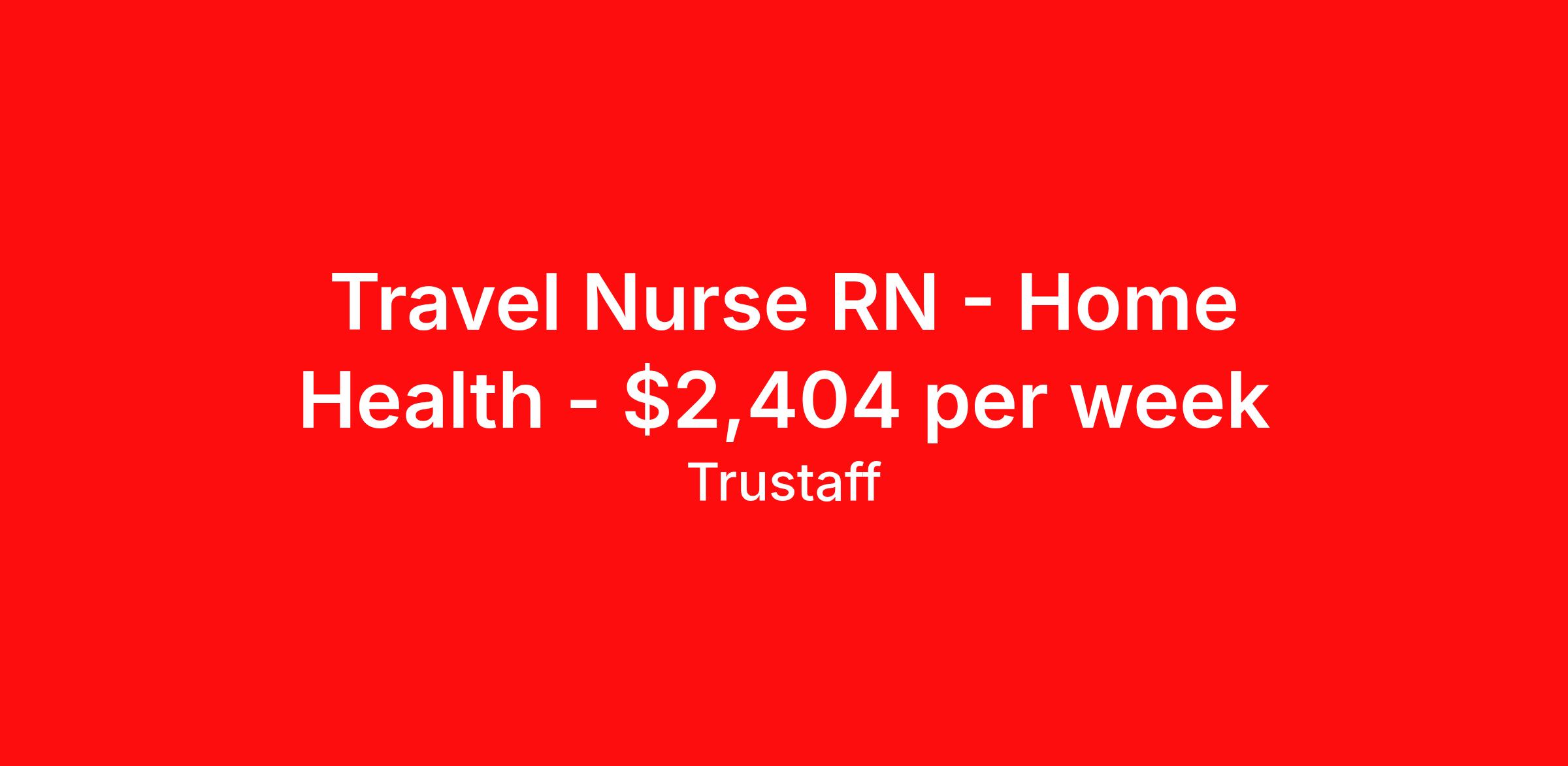 Trustaff is seeking a travel nurse RN Home Health for a travel nursing job in Dickinson, North Dakota. Job Description & Requirements Specialty: Home Health Discipline: RN Start Date: 04/06/2026 Duration: 13 weeks 40 hours per week Shift: 8 hours, days Employment Type: Travel As a Home Health RN, you'll visit the home of each patient to provide treatment and/or palliative care. Daily tasks for a Home Health nurse include: taking vitals, drawing labs, doing wound care or dressing changes, assisting with ADLs, and other tasks. You'll monitor the patient's condition and then report on their current plan of care. Trustaff Job ID 988295. Pay package is based on 8 hour shifts and 40 hours per week (subject to confirmation) with tax-free stipend amount to be determined. Posted job title: Home Health About Trustaff Our nurse-first attitude has set us apart from other travel nursing agencies When you join the Trustaff family, you’re more than just a body filling a role—you're a vibrant individual with dreams and aspirations. As one of the nation's leading travel nursing companies, your recruiter will work with you one-on-one to guide your career and help you achieve your goals. You decide when and where you want to work Enjoy industry-leading pay, benefits, and bonuses Experience new people and places Grow your clinical skills and expand your experience Travel nursing lets you take your professional career to the next level while maintaining your flexibility and freedom. At Trustaff, we put you first, so you never have to compromise your work or pay. We are proud to have one of the highest nurse retention rates in the country. Some of the other reasons people choose us include: Priority access to thousands of travel nursing jobs Industry-leading pay Guaranteed weekly hours Experienced recruiters Comprehensive benefits, including medical, dental, and vision 401k with employer match Assistance with travel, compliance, and housing Great bonuses for completions, referring friends, and more Benefits Weekly pay Guaranteed Hours Wellness and fitness programs Referral bonus Medical benefits Dental benefits Vision benefits