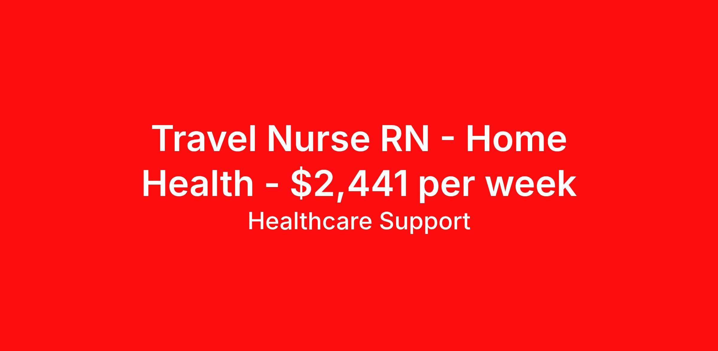 Healthcare Support is seeking a travel nurse RN Home Health for a travel nursing job in Charlotte, North Carolina. Job Description & Requirements Specialty: Home Health Discipline: RN Start Date: 03/30/2026 Duration: 13 weeks 40 hours per week Shift: 8 hours, days Employment Type: Travel Healthcare Support Job ID 494407. Pay package is based on 8 hour shifts and 40 hours per week (subject to confirmation) with tax-free stipend amount to be determined. Posted job title: home health rn About Healthcare Support Healthcare Support excels at providing a streamlined and red-carpet experience for our travelers. Whether you are a nurse, a therapist, or an allied health professional, our goal is to connect you with top-rated facilities throughout the country and get you on the road to your next adventure. We leverage 20 years of relationships with the industry’s most respectable companies across all 50 states, both through direct client partnerships and via national MSP programs. From health systems and hospitals to specialty clinics and post-acute facilities, you can work where you want to work and go where you want to go. Not only does HealthCare Support reimburse for relocation and travel costs on your first check, but we also offer license and certification reimbursements required for your assignments so that you can focus on building your career. During your assignment, you’ll have access to medical benefits, 24/7 support from our Clinical Advocacy Team, and a travel team with stateside operations. Your travel team will include a designated credentialing expert to help you navigate every step of the on-boarding process, a payroll specialist who you can communicate with directly, and a skilled recruiter who takes the time to understand your needs and works hard to find the right position for you. Don’t get lost in the shuffle of another overblown staffing agency. Choose HealthCare Support to be your trusted partner that you can rely on for all your travel assignments. We can’t wait to hear about the amazing adventures you’ll have! Pst! Ask us about our Direct Hire Opportunities! Benefits License and certification reimbursement Medical benefits Dental benefits Mileage reimbursement Employee assistance programs Referral bonus 401k retirement plan Holiday Pay Weekly pay