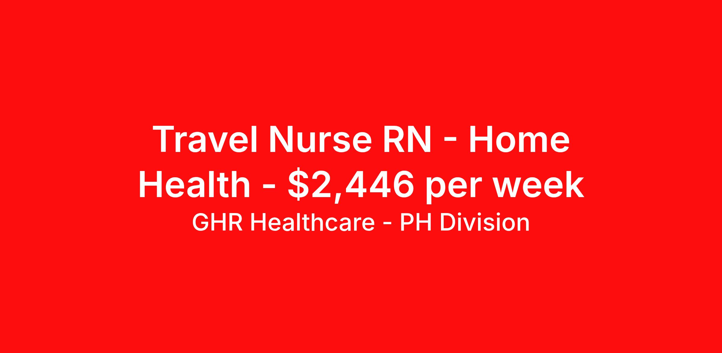 GHR Healthcare - PH Division is seeking a travel nurse RN Home Health for a travel nursing job in Louisville, Kentucky. Job Description & Requirements Specialty: Home Health Discipline: RN Start Date: 03/30/2026 Duration: 13 weeks 40 hours per week Shift: 8 hours, days Employment Type: Travel About GHR Healthcare - PH Division For over 30 years, GHR Healthcare has been the bridge between healthcare professionals and the facilities that need them nationwide. We're committed to uncovering your ideal fit, supported by GHR's dedication to competitive compensation, transparent communication, and a devoted team that genuinely cares about your career journey. You can trust us to stand by your side as your advocate, confidante, and partner in advancing your career. At GHR, care and consideration are at the heart of everything we do. Visit ghrhealthcare.com to learn more.