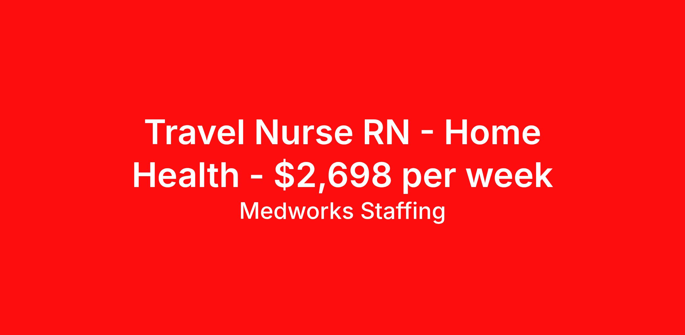 Medworks Staffing is seeking a travel nurse RN Home Health for a travel nursing job in Hadley, Massachusetts. Job Description & Requirements Specialty: Home Health Discipline: RN Duration: 13 weeks 40 hours per week Shift: 8 hours, days Employment Type: Travel Medworks Staffing Job ID 2688411. Pay package is based on 8 hour shifts and 40 hours per week (subject to confirmation) with tax-free stipend amount to be determined. About Medworks Staffing Discover the future of your healthcare career with MedWorks Staffing, where opportunities abound, and excellence thrives. MedWorks specializes in placing healthcare professionals in rewarding contract positions across the nation. We connect talented individuals with top-tier healthcare facilities, whether you're a seasoned professional or recent graduate eager to gain experience, our dedicated team is committed to find the perfect match for your skills and aspirations. EXPLORE - Diverse contract opportunities tailored to your expertise. CONNECT - Forge meaningful relationships with experienced Recruiters and top-tier healthcare facilities. THRIVE - Grow professionally with personalized support and guidance. Benefits Weekly pay Medical benefits Referral bonus Guaranteed Hours