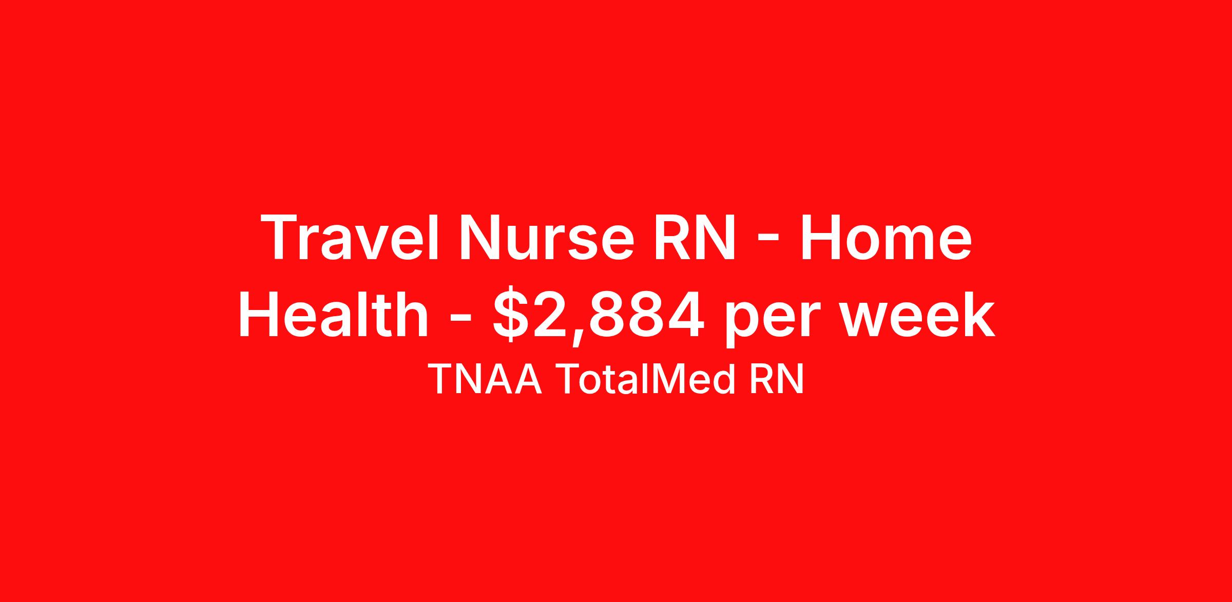 TNAA TotalMed RN is seeking a travel nurse RN Home Health for a travel nursing job in Roseburg, Oregon. Job Description & Requirements Specialty: Home Health Discipline: RN Duration: 13 weeks 40 hours per week Shift: 8 hours, days Employment Type: Travel We're looking for Home Health RNs for an immediate travel opening in Roseburg, OR. The right RN should have 1 year of experience in Home Health nursing. Read below for more requirements. As an RN in Home Health, you will provide skilled nursing care to patients in their homes, supporting recovery, chronic disease management, and overall wellness. You'll work independently and collaboratively with the healthcare team to promote patient-centered care and improve health outcomes. As an RN, you should be prepared to perform the following tasks: Perform comprehensive patient assessments and develop individualized care plans Administer medications, treatments, and wound care as prescribed Monitor patient progress and adjust care plans accordingly Educate patients and families on disease management, medication use, and health maintenance Coordinate care with physicians, therapists, and other healthcare providers Provide skilled nursing interventions such as IV therapy, catheter care, and respiratory support Document nursing care, patient responses, and progress accurately and timely Identify and report any changes in patient condition promptly Ensure compliance with infection control, safety, and regulatory standards Manage time efficiently to meet patient visit schedules and maintain reliable communication The ideal candidate must have at least one year of experience as an RN in a Home Health setting. Additionally, they should possess a current BLS certification and be eligible for State licensure. Additional certifications may be required. RNs in home health should be autonomous, organized, and compassionate, able to provide high-quality care in a patient's home environment. Requirements*: BLS, 2 Years * Additional certifications may be required before beginning an assignment. TotalMed Travel Job ID 1379110. Pay package is based on 8 hour shifts and 40 hours per week (subject to confirmation) with tax-free stipend amount to be determined. Posted job title: Home Health - Home Health RN - Travel Nurse About TNAA TotalMed RN TotalMed is a Top Ten, travel nursing and healthcare staffing agency with the mission of igniting purpose in healthcare. The organization staffs nurses, therapists, pharmacists, and other clinicians of all specialties in all 50 states. They offer local and travel jobs and match caregivers with the right organization to assist both facilities and patients. As an organization, they focus on putting highly-skilled staff into facilities to ensure adequate staffing for a better patient experience. TotalMed specializes in recruiting and placing healthcare professionals in travel, PRN, and permanent positions across the country in Nursing and Allied Health. Throughout 2020, the organization filled roles at even the most short-staffed facilities during the most challenging time in healthcare. By matching the right travel healthcare professional with the right organization, TotalMed continues to offer a lifeline to facilities and their patients. Benefits Weekly pay Guaranteed Hours Continuing Education 401k retirement plan Sick pay Wellness and fitness programs Referral bonus Employee assistance programs Medical benefits Dental benefits Vision benefits Benefits start day 1
