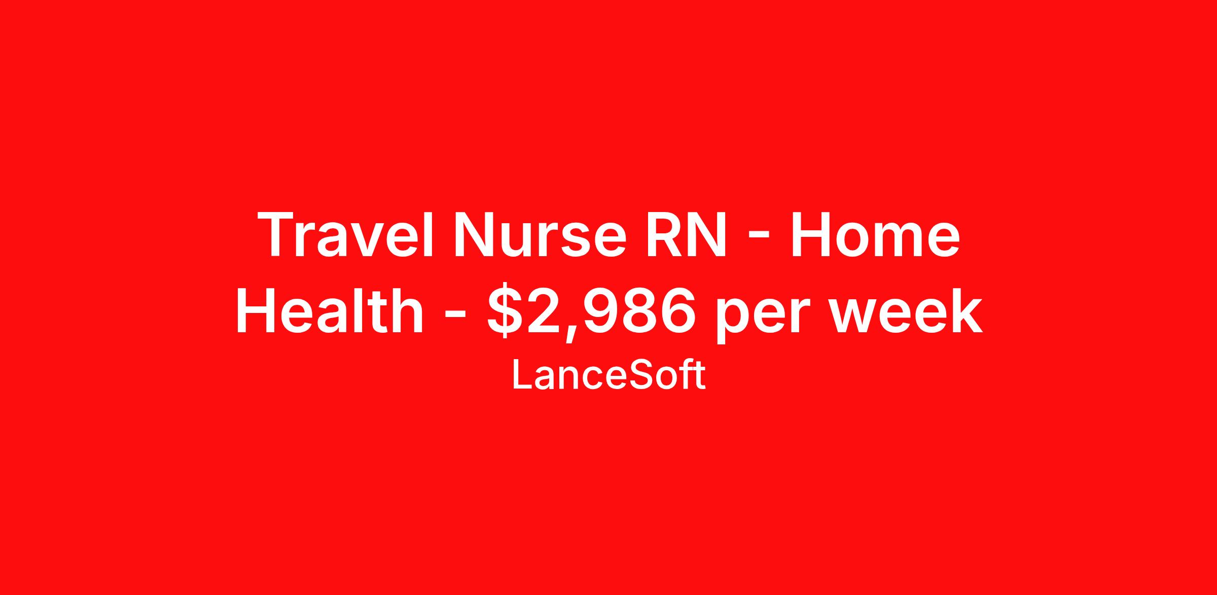 LanceSoft is seeking a travel nurse RN Home Health for a travel nursing job in Hermiston, Oregon. Job Description & Requirements Specialty: Home Health Discipline: RN Start Date: 03/30/2026 Duration: 13 weeks 40 hours per week Shift: 8 hours, days Employment Type: Travel Full-Time 13-week opening for experienced RN in Home Health . New, modern facility in rural Northeast Oregon . Applicants should have three or more years of nursing experience and the ability to come in and work with minimal direction or supervision. Day shift 8 am to 4:30 pm Monday thru Friday with weekend rotation (currently shared with 5 clinicians). Not to exceed 40 hours a week. (For the week before a scheduled weekend, RN would have Thursday off and work Saturday and Sunday and then have the following Friday off). Must have BLS. Home Health patients are seen in their home which can include assisted living or adult foster home. Home Health experience preferred. Must have their own automobile for work. About LanceSoft Established in 2000, LanceSoft is a Certified MBE and Woman-Owned organization. Lancesoft Inc. is one of the highest rated companies in the industry. We have been recognized as one of the Largest Staffing firms and ranked in the top 50 fastest Growing Healthcare Staffing firms in 2022. Lancesoft offers short- and long-term contracts, permanent placements, and travel opportunities to credentialed and experienced professionals throughout the United States. We pride ourselves on having industry leading benefits. We understand the importance of partnering with an expert who values your needs, which is why we’re 100% committed to finding you an assignment that best matches your career and lifestyle goals. Our team of experienced career specialists takes the time to understand your needs and match you with the right job Lancesoft has been chosen by Staffing Industry Analysts as one of the Best Staffing Firms to Work for.LanceSoft specializes in providing Registered Nurses, Nurse Practitioners, LPNs/LVNs, Social Workers, Medical Assistants, and Certified Nursing Assistants to work in Acute Care Centers, Skilled Nursing Facilities, Long-Term Care centers, Rehab Facilities, Behavioral Health Centers, Drug & Alcohol Facilities, Home Health & Community Health, Urgent Care Clinics, and many other provider-based facilities. Benefits Weekly pay Medical benefits