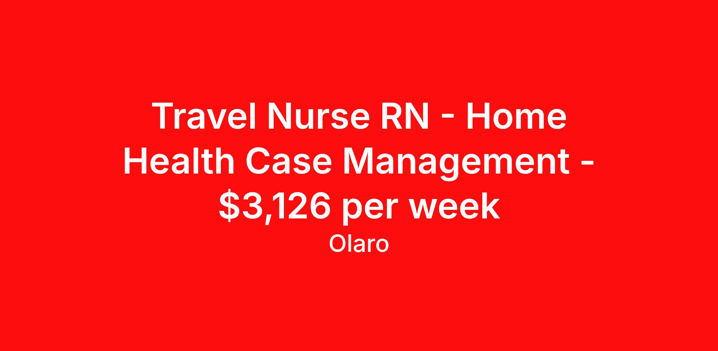 Travel Nurse RN - Home Health Case Management - $3,126 per week