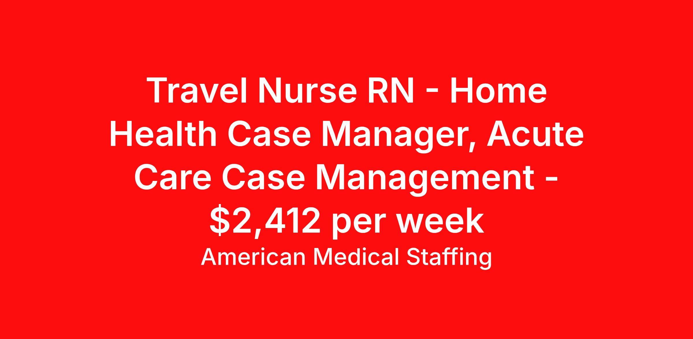 American Medical Staffing is seeking a travel nurse RN Home Health Case Manager, Acute Care Case Management for a travel nursing job in Charlottesville, Virginia. Job Description & Requirements Specialty: Acute Care Case Management Discipline: RN Start Date: ASAP Duration: 13 weeks 40 hours per week Shift: 10 hours, days Employment Type: Travel We’re living in the new normal. Lives and careers look different today. So why shouldn’t you have a role that delivers excitement, fewer restrictions, and brings you closer to loved ones? At American Medical Staffing (AMS), we believe in supporting the pioneers who embody the sense of adventure each new placement brings, and we’re looking for a RN for a Home Health contract assignment. Job Title : RN: Home Care Case Mgmt Location : Charlottesville, Virginia Setting : Home Health Pay Range : Competitive, Negotiable, with Weekly Pay Schedule : 10-Hour Days, 07:00:00-17:00:00, 10.00-4 Contract Length : 13 Weeks Requirements : · 2 years of experience as a RN · Valid RN license · Be willing to obtain Virginia licensure · Experience with OASIS and Homecare Homebase EMR systems Why Choose American Medical Staffing? · Day-One Benefits : Medical, dental, and vision plans with no waiting period. · Wellness PTO : Build 1 or 2 weeks of paid time off into your contract. · Hotel Discounts : Save up to 60% on hotel bookings with access to 700,000 discounted properties. · Loyalty Program : Earn financial incentives automatically based on hours worked and assignment type. · Referral Program : $500 for you and $500 for each referral after 450 hours—no limits · Working Advantage : Access exclusive discounts on retail, entertainment, and travel. · Scrub Discount : 20% off all scrubs through our customized AMS store. · Retirement Plans : 401(k) options to help you plan for the future. · Compliance & Credentialing Support : Let us handle the logistics so you can focus on patient care. Apply now to take the next step in your journey. American Medical Staffing is an Equal Employment Opportunity Employer and does not discriminate on the basis of race, color, religion, sex, national origin, sexual orientation, gender identity, disability, age, or any other non-merit factor. American Medical Staffing Job ID 107636. Pay package is based on 10 hour shifts and 40.0 hours per week (subject to confirmation) with tax-free stipend amount to be determined. Posted job title: RN:Home Care Case Mgmt,07:00:00-17:00:00 About American Medical Staffing American Medical Staffing is a staffing agency headquartered in Baltimore, MD. Our goal is to CREATE an extraordinary experience for our health care professionals. Our roots are nurse owned and operated so we know what clinicians want - lots of options, a smooth and informed placement process, competitive and accurate pay, great customer service and responsiveness to requests, and advocacy when there is an issue. When AMS was founded in 2001, we started our company with a mission to be a better agency than our competitors. We have always put a heavy emphasis into what is best for our employees, not necessarily just our clients or our company. You are not an expense as you may be to a hospital; you are an asset. We take employee advocacy seriously; you are not just a number to us. The end result is that you don`t work for us; we work for you. Since starting in Baltimore, MD, we continue to grow throughout the country. Check out our industry leading reviews on Google and Indeed to see how much our clinicians enjoy working with us! · Benefits: AMS offers an array of benefits for any employee working 30 hours or more! Those eligible employees who choose to participate will pay the premiums with deductions from their pre-tax earnings. We offer a complete benefits package including Health Insurance, 401K with up to 2% match, Life, Vision, and Dental. From health and wellness support, financial or legal needs, or help with life's everyday challenges, our Employee Assistance Program provides you with resources, services and discounts to help you manage your unique concerns and save time, energy and money. We also offer additional Employee Perks that you can enjoy as an AMS employee: Scrubin – Uniform Discounts Working Advantage – unlimited access to thousands of exclusive discounts and special offers nationwide for theme parks, shows, tours, attractions, sports, concerts, hotels, rental cars, retail gift cards, movie tickets and much more Hotel Engine - Save up to 60% when booking hotel rooms, with access to more than 700,000 deeply discounted hotels worldwide. Discounted Pet Insurance Wellness Program, including fitness, nutrition and financial wellness Betterhelp - 1 month of free therapy, followed by a discounted rate for our Healthcare Professionals and their family members. Win Win Referral Bonus - $500 for you, and $500 for them! Benefits 401k retirement plan Life insurance Medical benefits Dental benefits Vision benefits