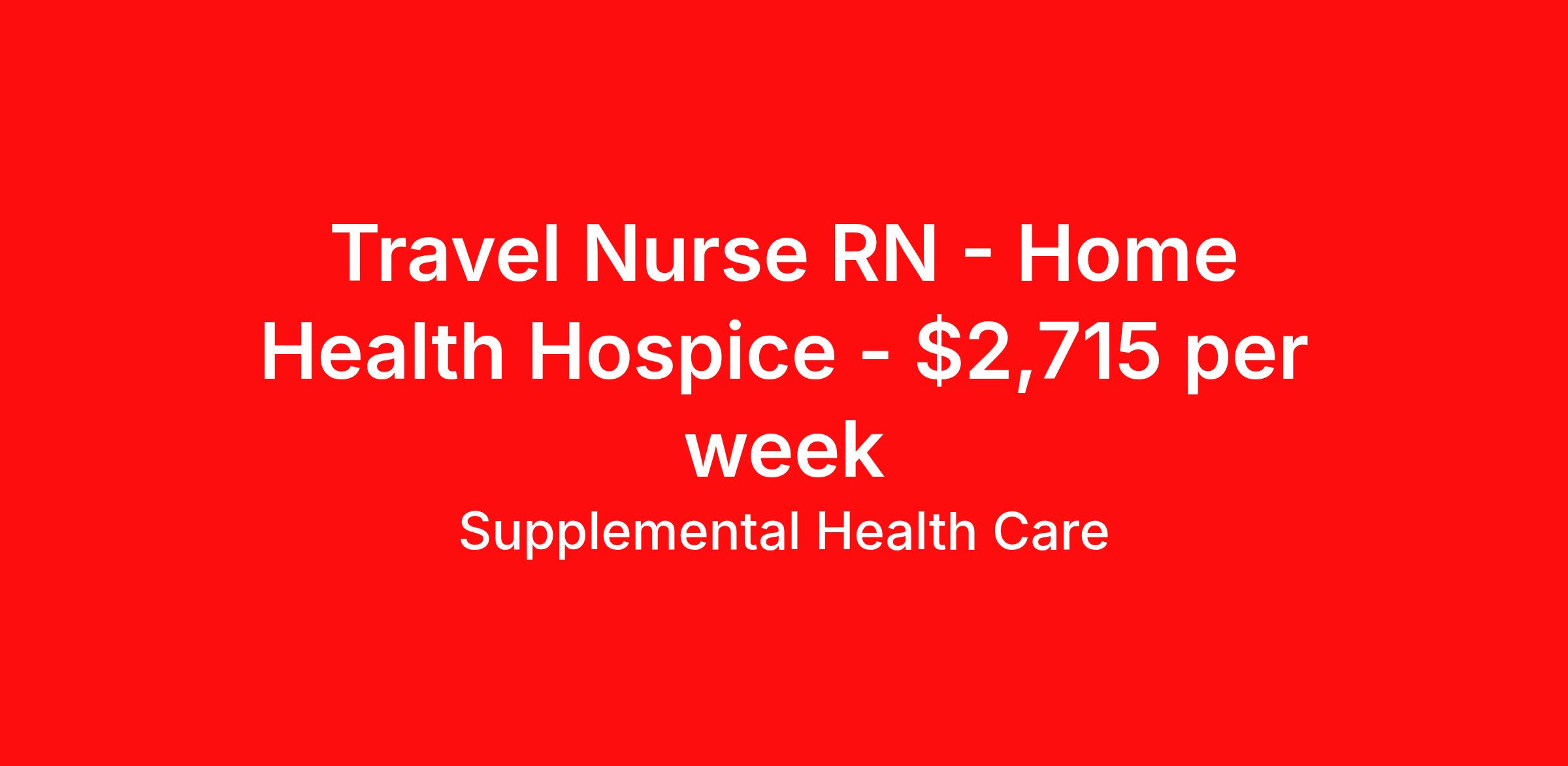 Supplemental Health Care is seeking a travel nurse RN Home Health Hospice for a travel nursing job in Saco, Maine. Job Description & Requirements Specialty: Hospice Discipline: RN Start Date: ASAP Duration: 13 weeks 40 hours per week Shift: 8 hours, days Employment Type: Travel Job Description: Supplemental Health Care is currently hiring Health Coaches in Saco, Maine to work at a parterning Home Health Or Hospice. As a national healthcare staffing agency, we’re committed to connecting our healthcare professionals with the right opportunities wherever they want to work. Qualifications: Current Maine Health Coaching Certification American Heart Association BLS 1 year of recent relevant experience Bachelor's degree in healthcare preferred Over 4 years of experience coaching clients one-on-one preferred Health Coach Contract Details: $2,520 - $2,715 per week* 13-week contract with possibility to extend 40 hours per week Will provide care within their scope of practice and in accordance with the standards of the facility *Estimated weekly payment may include both taxable wages and tax-free reimbursements for meals, housing, and incidentals. Please speak with a recruiter for details. If you'd like more details on these Health Coach assignments or are ready to get started with the placement process, please apply online now. What We Offer: Full medical, dental, vision, life, and even pet insurance! Round the clock support. No matter where you are or what time it is, Supplemental Health Care is standing by. SHC's Share the Care referral program is the most dynamic, profitable referral program in the industry. 401(k) Retirement Savings Program with a wide range of investment options. Discounted and free online access to CEU courses through Supplemental University. Supplemental Health Care is an Equal Opportunity Employer. All candidates, including veterans and those with disabilities, are encouraged to apply. SHC will consider for employment qualified applicants with criminal histories in a manner consistent with the requirements of applicable local, state, or federal law. To learn more, visit www.shccares.com/eeo Supplemental Health Care Job ID 1472329. Pay package is based on 8 hour shifts and 40 hours per week (subject to confirmation) with tax-free stipend amount to be determined. Posted job title: Health Coach - Home Health Or Hospice About Supplemental Health Care At Supplemental Health Care, a simple belief in the power of caring guides a unique commitment to world-class service in healthcare staffing. For 40 years, we’ve supported talented professionals pursuing their life calling in hospitals, schools, home health, corrections, behavioral health, and other settings. At SHC, we inspire vital connections and enrich lives and inspire better outcomes. As recipients of the Best in Staffing Awards for both Client and Talent, Supplemental Health Care is proud to be among only 2% of staffing companies singled out for the distinction based on the real feedback of our employees and the clients we serve. SHC has also earned The Joint Commission’s Gold Seal of Approval and is named among the Largest Health Care Staffing companies in the United States by Staffing Industry Analysts. We are also thrilled to recognize our very own SLP, Dr. Kelly Byrd as the American Staffing Association 2024 National Staffing Employee of the Year and Health Care Sector All-Star. We’re honored to connect Dr. Byrd to employment, share her incredible story, and support her family literacy nonprofit. For everyone that we serve, SHC is the place where caring hearts thrive. Benefits Referral bonus Benefits start day 1 401k retirement plan Continuing Education Discount program Health savings account