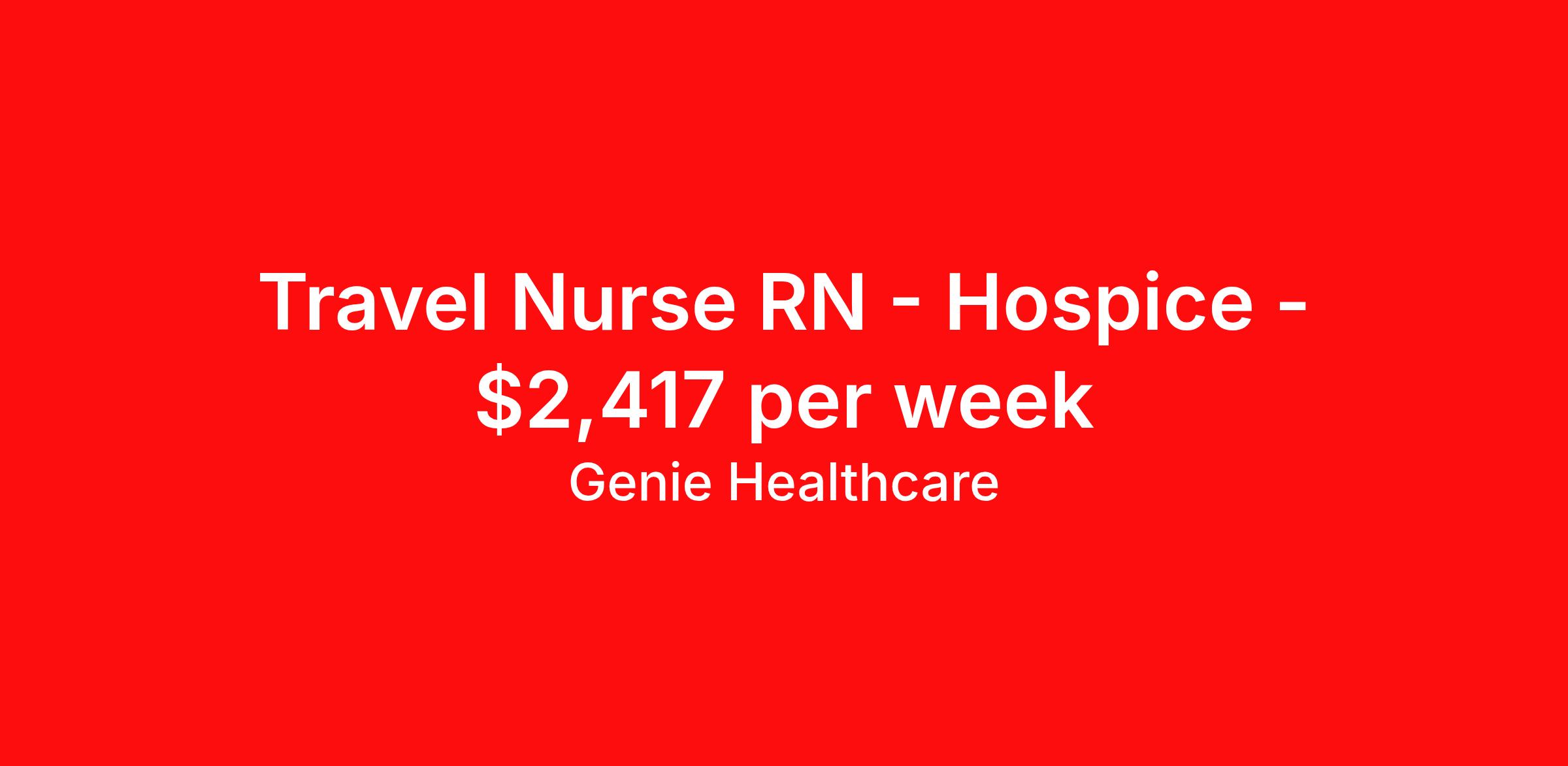 Genie Healthcare is seeking a travel nurse RN Hospice for a travel nursing job in Rapid City, South Dakota. Job Description & Requirements Specialty: Hospice Discipline: RN Start Date: 04/13/2026 Duration: 13 weeks 36 hours per week Shift: 12 hours, nights Employment Type: Travel 1 year of Hospice experience required. Will interview with facility over the phone. About Genie Healthcare Genie Healthcare is one of the fastest growing Nurse Travel Agencies in the USA. Genie serves hundreds of facilities and has over 4000 current travel RN contracts open at any given time. Genie provides travel RN’s flexibility, support, top pay scale, housing and the 1 rated, multi-state health insurance coverage. Genie Healthcare carries with it a commitment to providing a comprehensive level of service and quality care. Growing from a small team of eager recruiters to a company with satisfied clients in nearly every corner of the nation, delivering excellence in patient and customer care is the key to Genie’s success. The management team has 20 years of experience in workforce solutions and staffing in medical and non-medical fields, roles ranging from Clerical job to Cardiologist to software developer to CEO.
