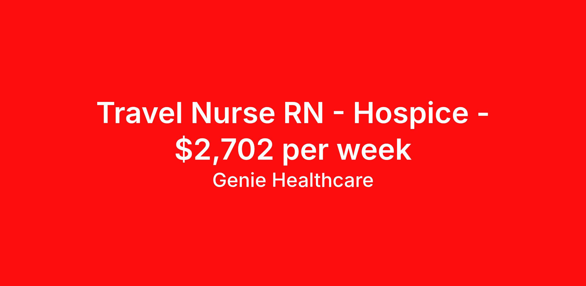 Genie Healthcare is seeking a travel nurse RN Hospice for a travel nursing job in Saint Louis, Missouri. Job Description & Requirements Specialty: Hospice Discipline: RN Start Date: 03/31/2026 Duration: 13 weeks 40 hours per week Shift: 8 hours Employment Type: Travel Hospice RN – Days | Travel Contract Shift: M–F 8 hr days Hours: 40 hrs/week Contract: 13 weeks Start: ASAP Details Coverage: St. Louis City & County (≈60-mile radius) Productivity: 24–30 visits/week Requirements Hospice experience required HomeCare HomeBase (HCHB) preferred Overtime must be pre-approved About Genie Healthcare Genie Healthcare is one of the fastest growing Nurse Travel Agencies in the USA. Genie serves hundreds of facilities and has over 4000 current travel RN contracts open at any given time. Genie provides travel RN’s flexibility, support, top pay scale, housing and the 1 rated, multi-state health insurance coverage. Genie Healthcare carries with it a commitment to providing a comprehensive level of service and quality care. Growing from a small team of eager recruiters to a company with satisfied clients in nearly every corner of the nation, delivering excellence in patient and customer care is the key to Genie’s success. The management team has 20 years of experience in workforce solutions and staffing in medical and non-medical fields, roles ranging from Clerical job to Cardiologist to software developer to CEO.
