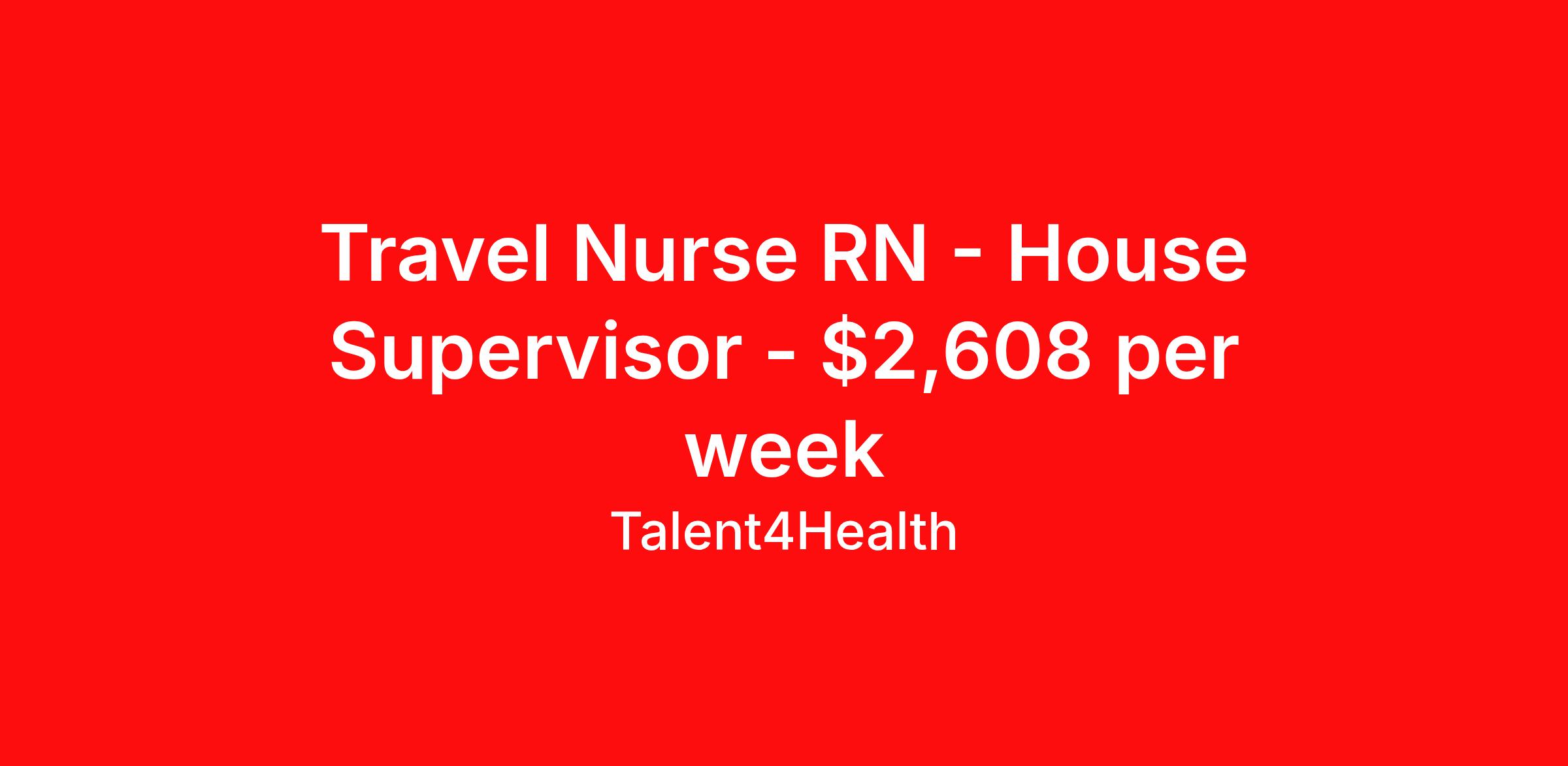 Travel Nurse RN - House Supervisor - $2,608 per week