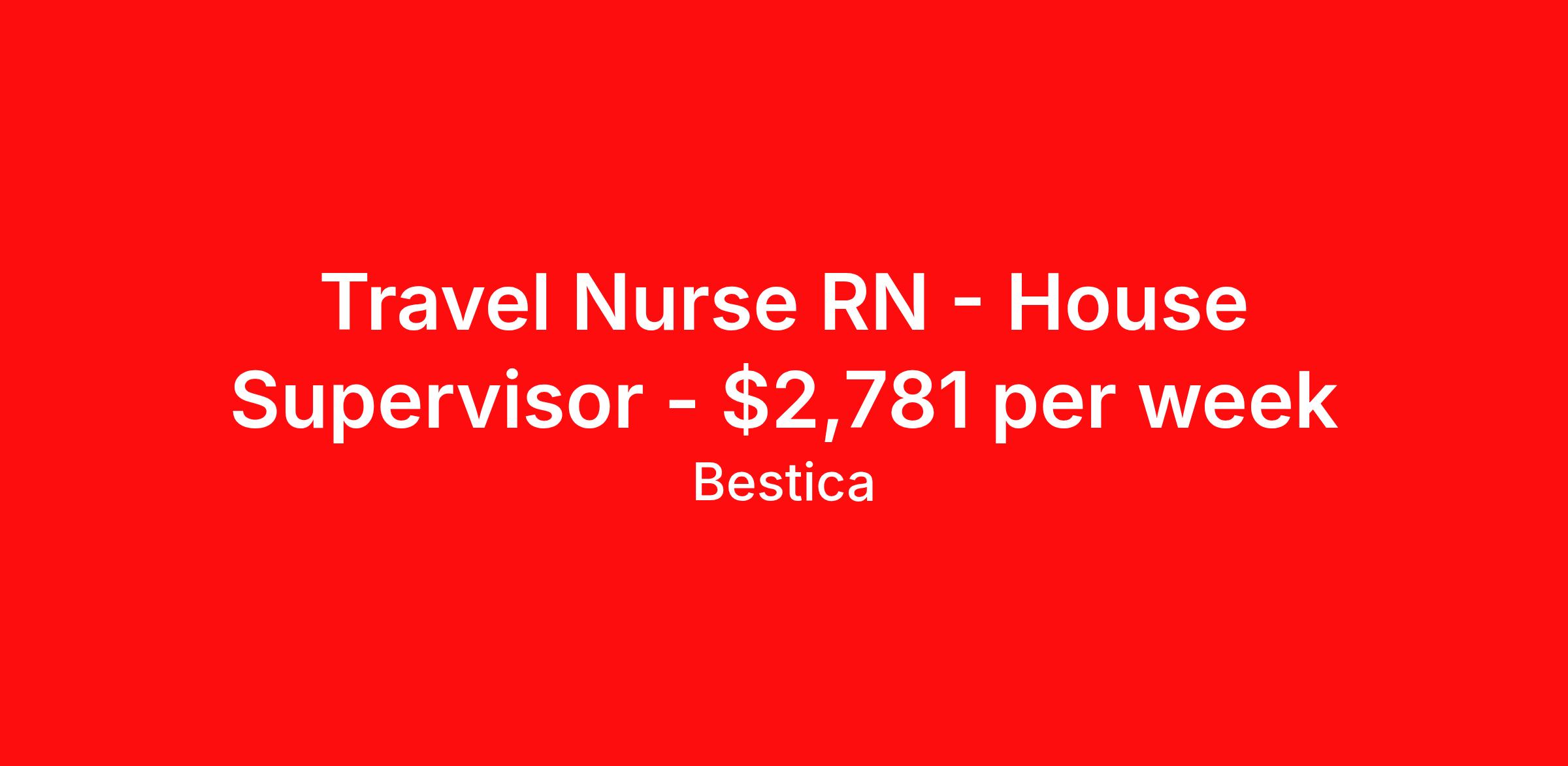 Travel Nurse RN - House Supervisor - $2,781 per week
