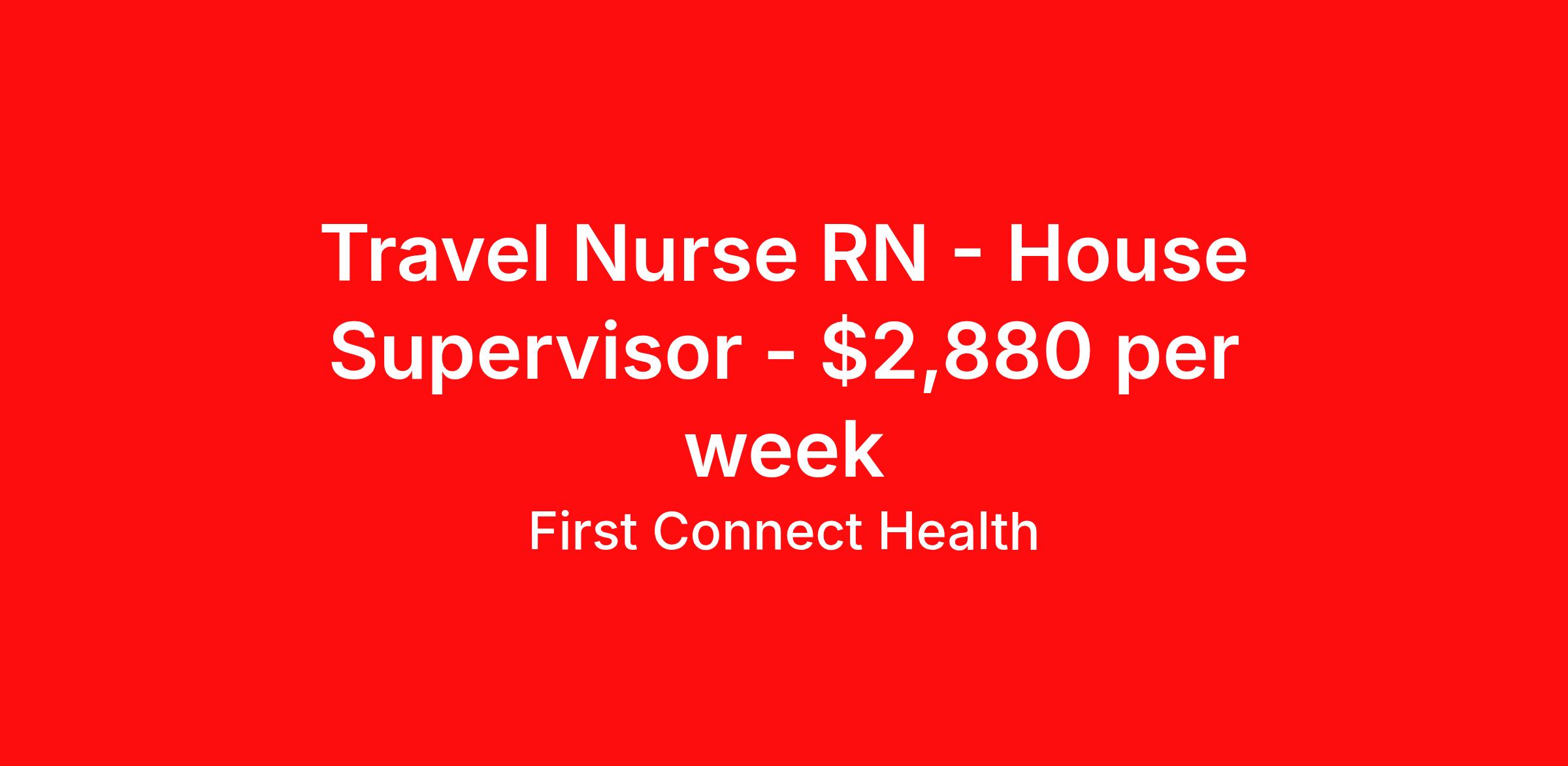 First Connect Health is seeking a travel nurse RN House Supervisor for a travel nursing job in Aberdeen, Washington. Job Description & Requirements Specialty: House Supervisor Discipline: RN Start Date: 04/13/2026 Duration: 13 weeks 36 hours per week Shift: 12 hours, days Employment Type: Travel RN House Supervisor Must have current WA license or a multi-state license with the following verifications Must have Current BLS, ACLS, knowledge of Meditech is helpful but not required. Minimum of 4 years of recent clinical experience; 1 year demonstrated nursing leadership experience preferred. Ability to manage multiple priorities effectively in a fast pace environment; Maintains appropriate and efficient staffing levels in the clinical departments; must have intervention skills in dealing with staff, patients, family or medical staff. Must work well with others. First Connect Health - 294892 Recruiter - Shubham Singh About First Connect Health At First Connect Health , we take pride in being a Joint Commission–certified healthcare staffing agency , headquartered in Newark, New Jersey. This prestigious certification is more than just a seal — it's a reflection of our commitment to excellence, safety, and quality in everything we do. By meeting the rigorous standards set by The Joint Commission, one of the most respected accrediting bodies in healthcare, we've demonstrated that our processes, compliance, and patient care standards are aligned with the highest levels of quality in the industry. But our dedication goes beyond certifications. Nurses choose First Connect Health because: ✅ Trust and Transparency: We foster honest communication, timely updates, and full transparency throughout your placement journey. ✅ Best Pay & Benefits: We offer industry-leading compensation packages, along with benefits that support your career goals. ✅ Flexibility & Choice: Whether you're seeking short-term assignments, long-term contracts, or local opportunities, we provide the flexibility to suit your preferences. ✅ Personalized Support: Our recruiters take the time to understand your needs, guiding you with care, respect, and responsiveness at every step. When you work with First Connect Health, you're not just another number — you're a valued professional. Join a team that’s focused on your success, your well-being, and your future in healthcare. Benefits Medical benefits Sick pay 401k retirement plan Weekly pay Referral bonus